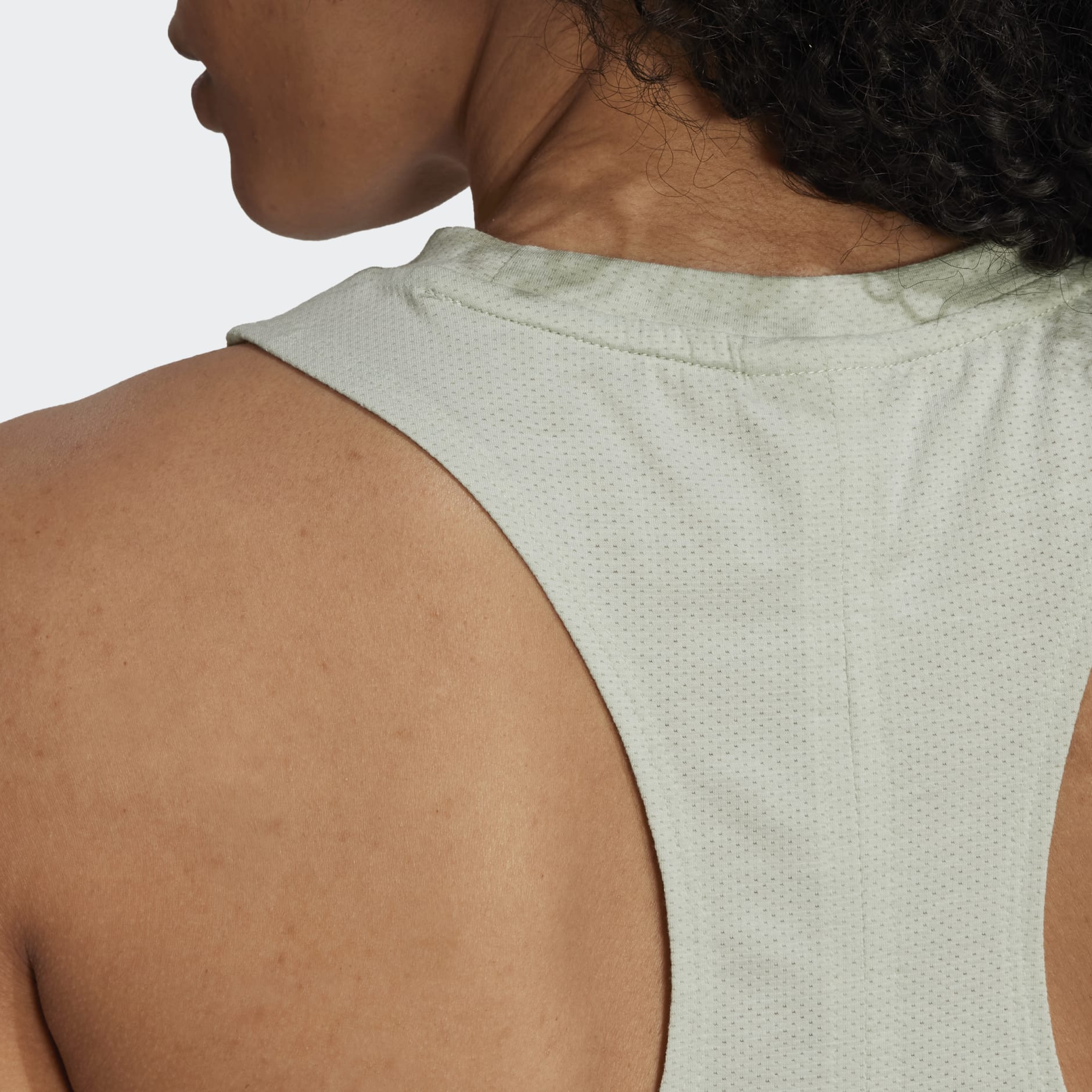 Be ready for a quick trip or an all-out workout. You'll be prepared for anything when you have this cropped tank top. Stay dry no matter how hard you train, thanks to adidas AEROREADY. A slit on the back makes it easier to move freely. Soft-touch mesh has just enough stretch and an airy feel, so you can break your personal records like it's no big deal.