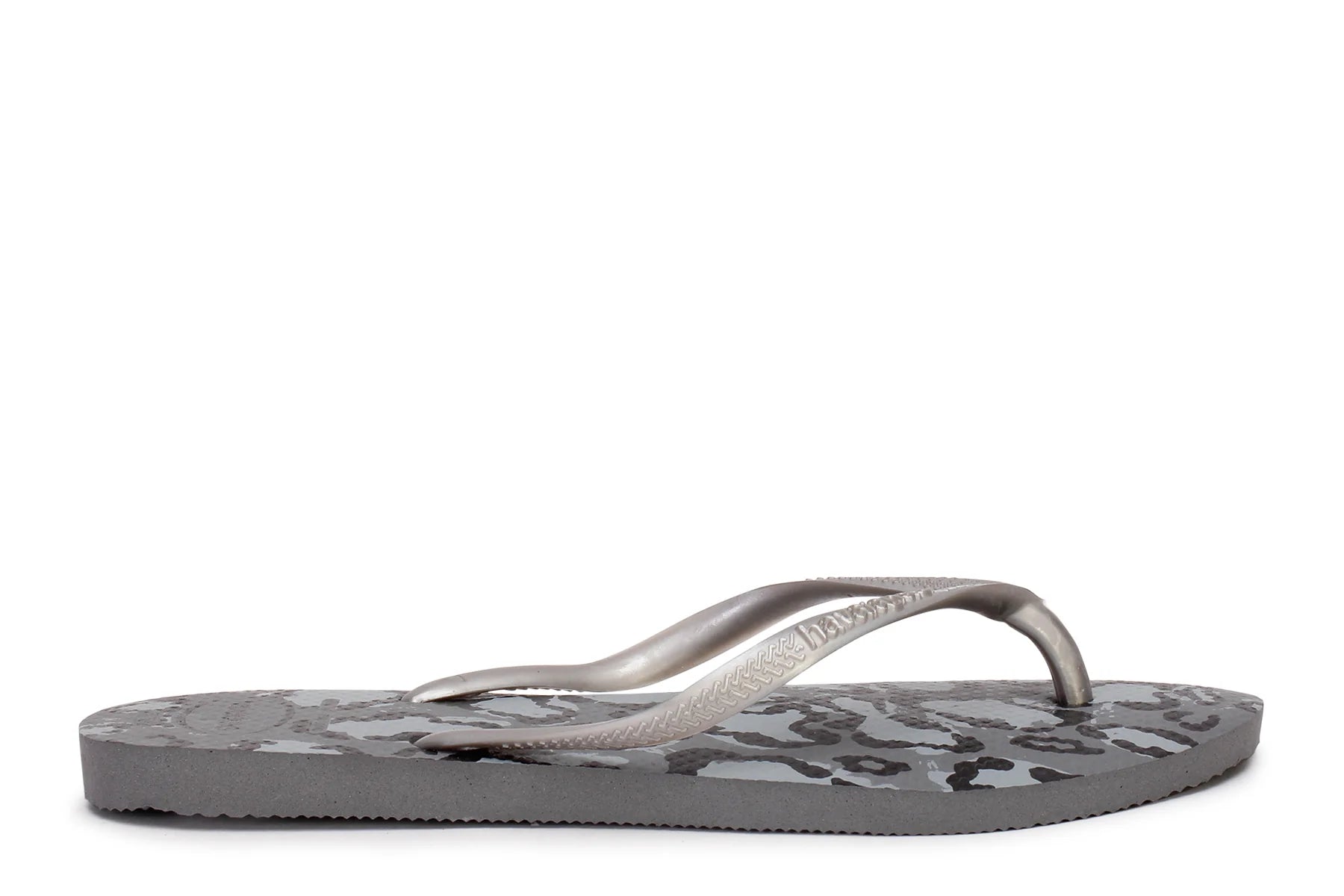 Havaianas women's slim animal floral flip flops, featuring animal prints you love, in fresh and variant colors. Havaianas logo on slim metallic straps.