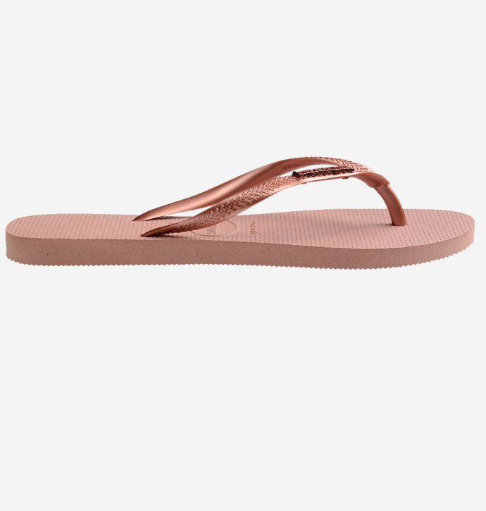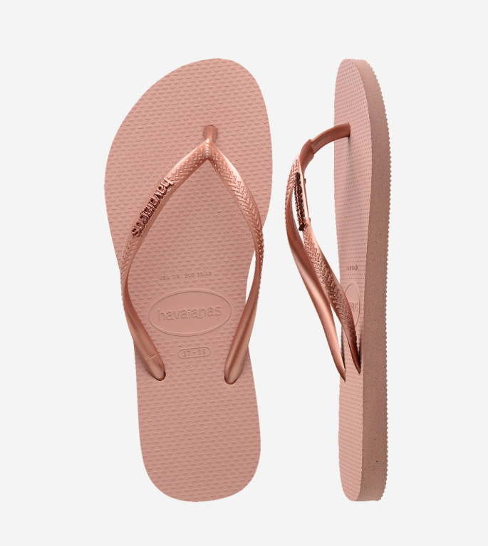 Meet the Havaianas Slim Logo Metallic flip-flop - a perfect blend of iconic style and a touch of shine! These chic sandals feature thinner straps and soles, offering a sleek silhouette that's as comfortable as it is elegant.