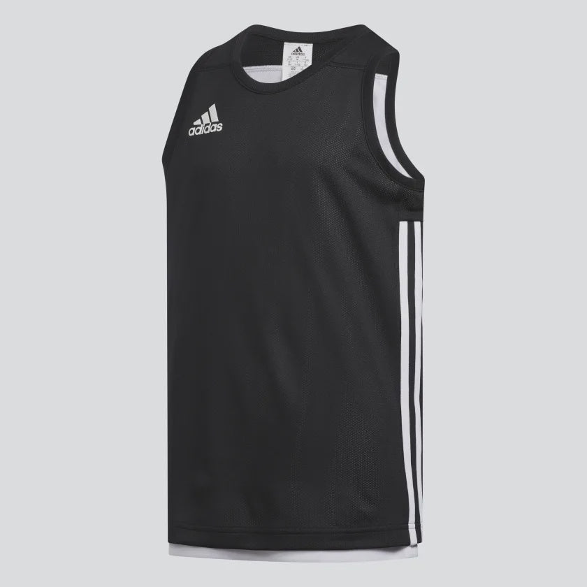 Let them play in comfort in this kids' reversible basketball jersey. It features a mesh build with contrast 3-Stripes on one side and a durable doubleknit build on the other. Moisture-wicking fabric keeps your little dribbler dry and comfortable for hours of play.