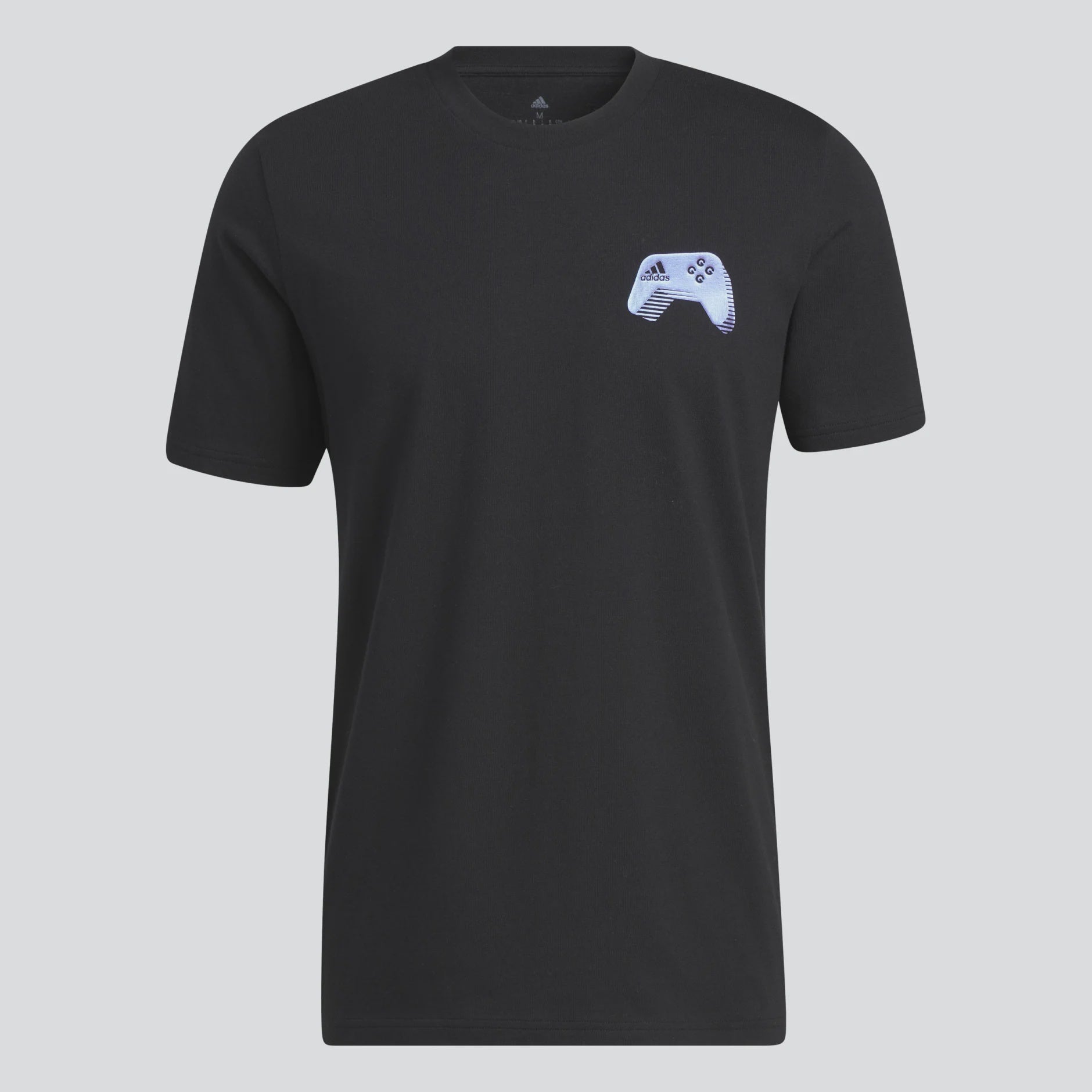Wear it on the way to team practice. Or in front of the screen, as you size up the virtual competition. This gaming-inspired adidas t-shirt is made from soft cotton jersey and cut for a classic crewneck shape. And it saves the big adidas Badge of Sport graphic for the back. Because you're going to leave the other team behind you. Our cotton products support more sustainable cotton farming.