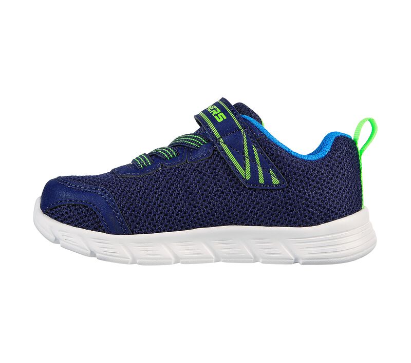 Have the little ones play and stride in comfort with Skechers Comfy Flex - Mini Trainers. This lightweight slip-on features an athletic mesh and synthetic upper with a cushioned comfort insole.