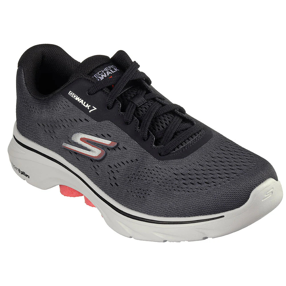 Walk in easy-wearing comfort with Skechers GO WALK 7™ - Avalo 2. This lace-up features an engineered mesh upper with a Skechers Air-Cooled Goga Mat™ insole, lightweight ULTRA GO® cushioning, and high-rebound Hyper Pillar Technology™ for added support.