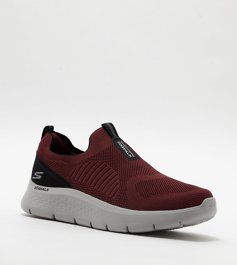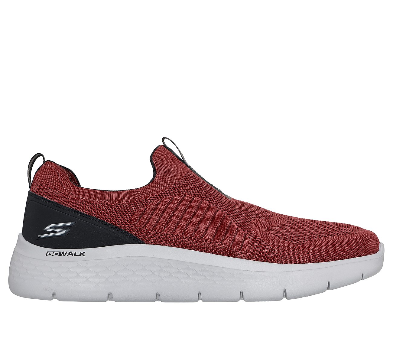 Get an extra step of comfort with GO WALK Flex - Peerless. Featuring a high apex engineered knit slip-on upper with a breathable Skechers Air-Cooled Goga Mat™ insole and lightweight ULTRA GO® cushioning.