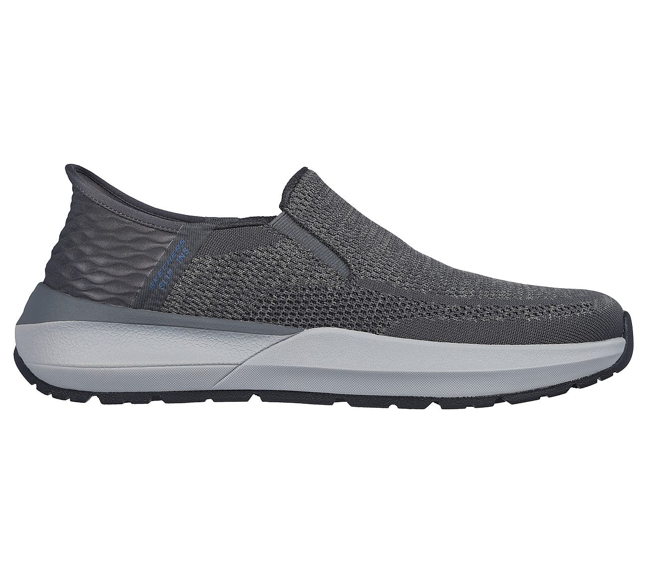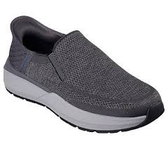 Simply step in and go wearing Skechers Hands Free Slip-ins®: Neville - Rovelo, designed with our exclusive Heel Pillow™ and a Classic Fit. This laceless style features an engineered knit upper with twin gore panels for ease of wear, a Skechers Air-Cooled Memory Foam® comfort insole and Goga Mat Arch™ cushioning for added support.