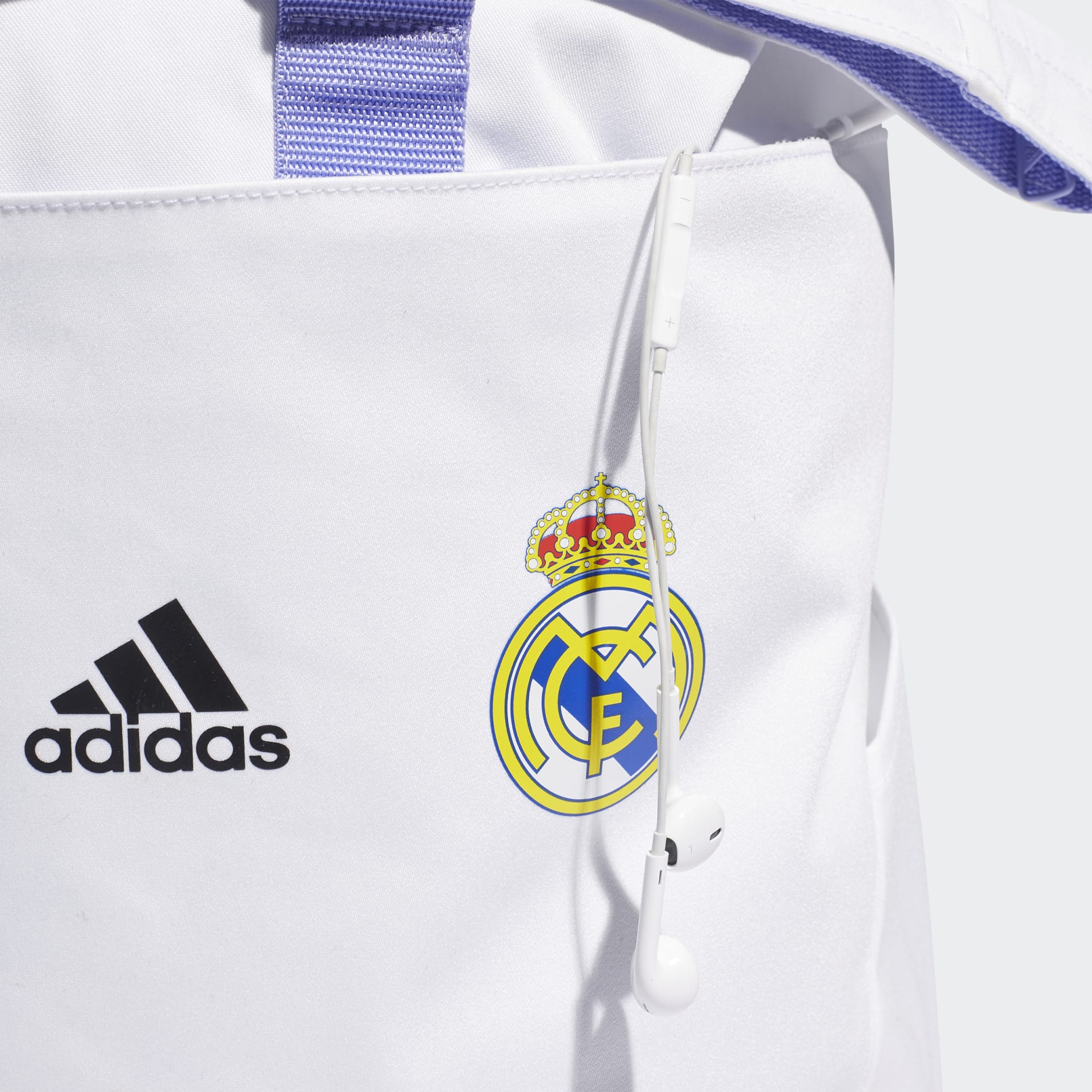 Fitting in? Standing out? Whatever your reason, this adidas Real Madrid backpack shares your football pride with a screenprinted club badge. Its selection of pockets and compartments means you can always find what you need. The mesh back panel keeps air circulating so you stay comfortable on the move. Made with a series of recycled materials, and at least 60% recycled content, this product represents just one of our solutions to help end plastic waste.