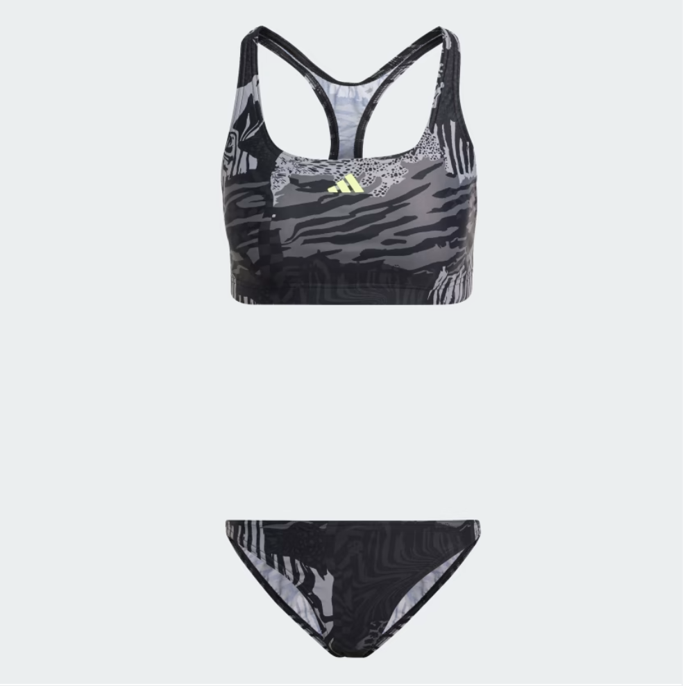 Take a long ocean swim or relax in the sun on your beach towel. Why not both? This adidas bikini is sporty as well as stylish. The athletic cut says triathlon training, while the bold animal print says it's time for a selfie.