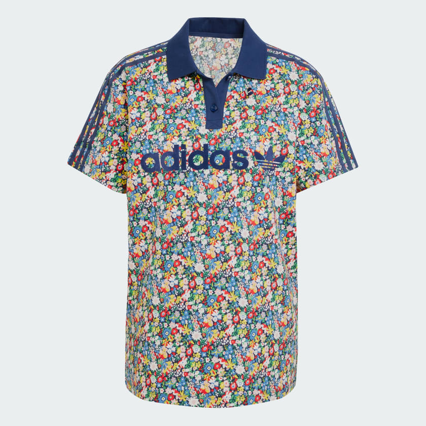adidas Originals and luxury department store Liberty London come together with this colourfully vibrant football jersey. Made from sporty piqué fabric with a classic polo collar, this fresh design features an allover floral graphic bursting with colour and bouquet details. 3-Stripes along the shoulders and sleeves and a linear Trefoil logo right out in front bring it all back to authentic heritage.