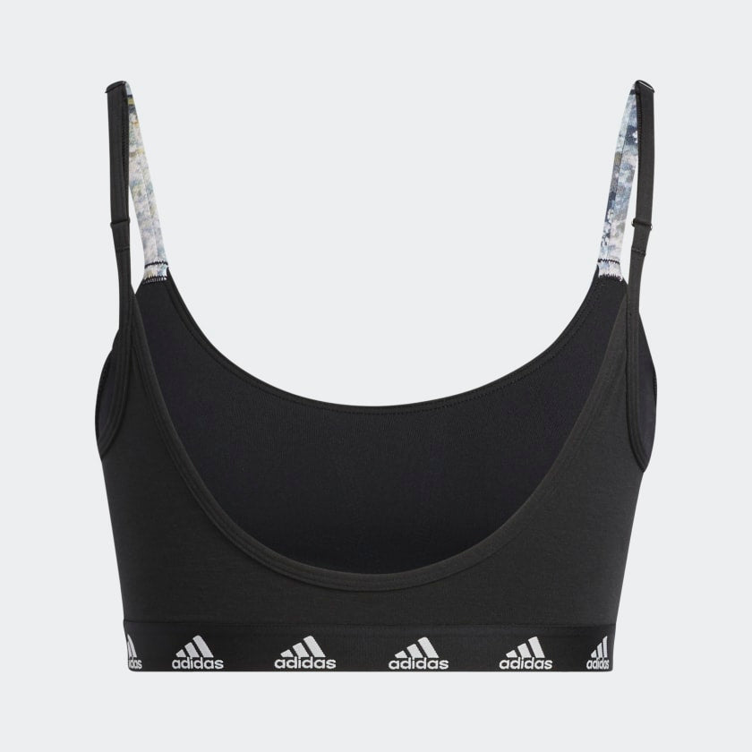 Like going braless, but better. This adidas bra is a comfy essential you'll want to live in 24/7. With no pads and no wires, the simple design is pure comfort. It's made of soft-touch fabric, with moisture-absorbing AEROREADY. Adjust the thin straps to fine-tune the fit.
