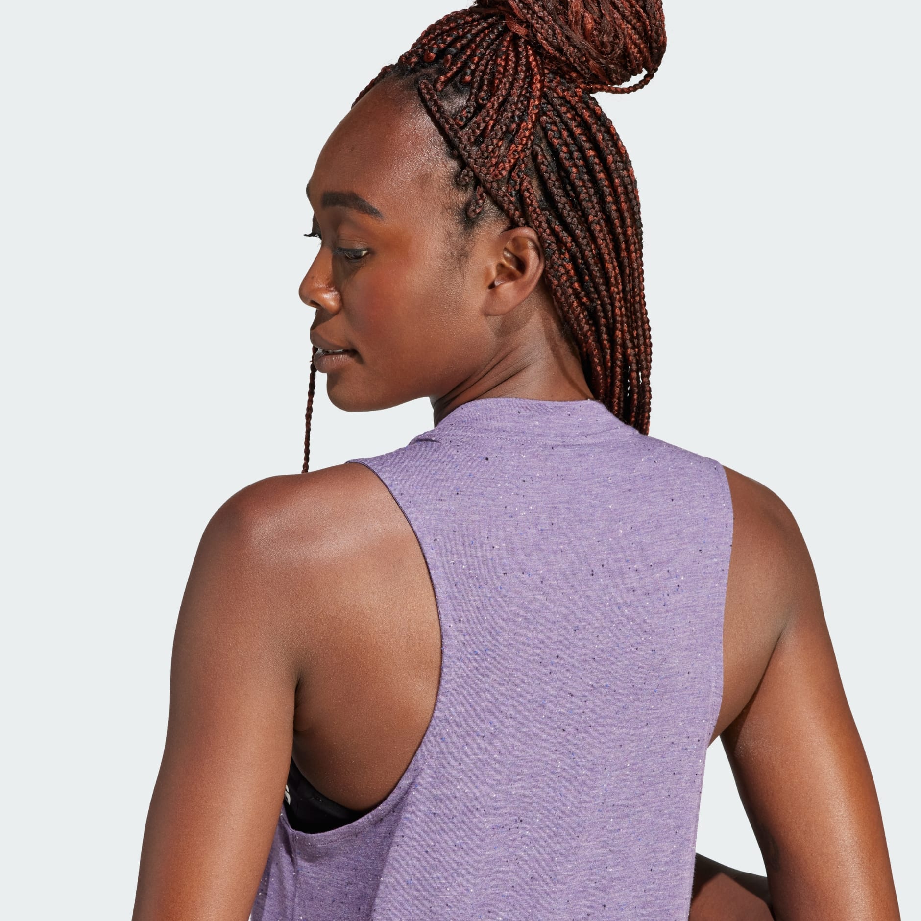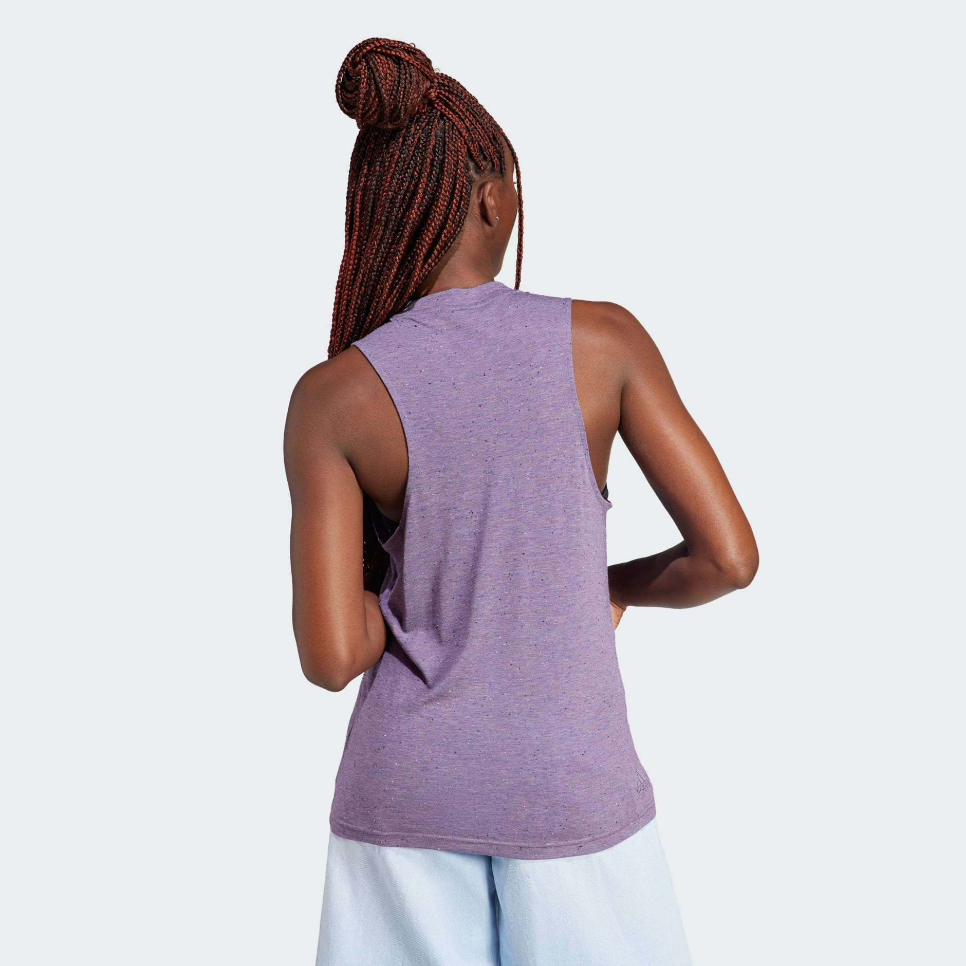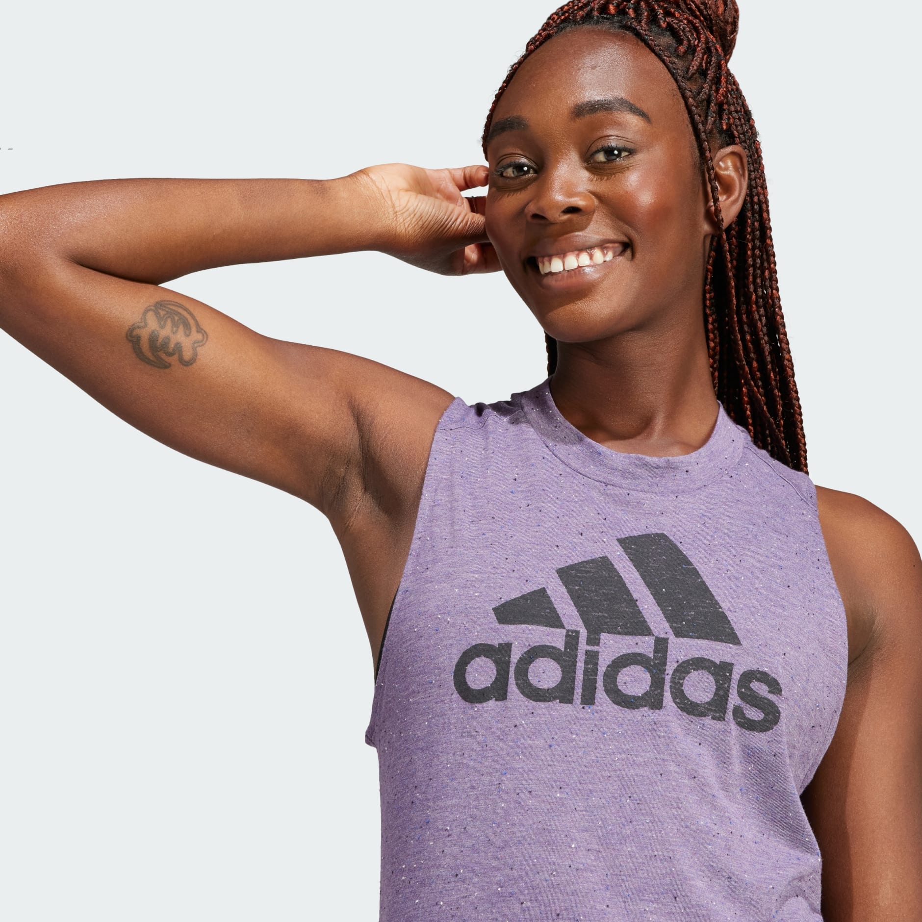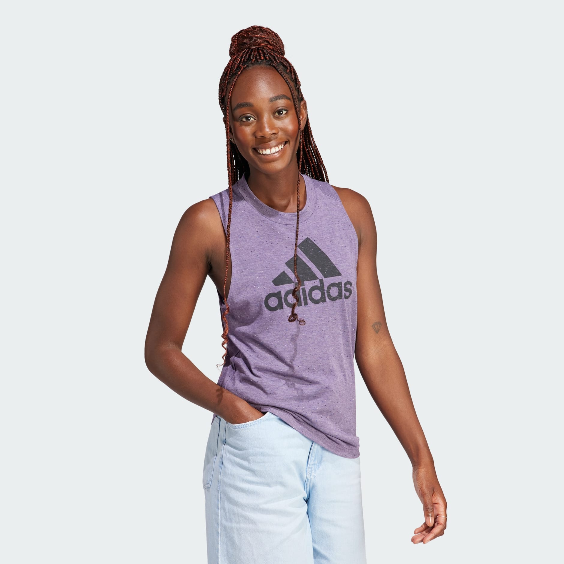 Something you can move in. Something you can relax in. This adidas tank top lets you do it all. No compromises. Just balance. Super-soft material puts comfort at the forefront. Let it hang loosely or tuck it in — the droptail hem falls longer in the back to give it that final touch of ease. The mélange look adds subtle visual texture, though the large contrast logo graphic goes the opposite direction of subtlety, and flirts with the extreme.