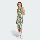 Make a bold statement in this adidas x FARM Rio dress. Drawing inspiration from the vivid colours and patterns of the tropics, the eye-catching allover print reflects signature Brazilian flair. The slim fit highlights your figure as you move, while stretchy single jersey fabric keeps comfortable. Pair it with sneakers for a sporty look or dress it up with heels for a night out. However you style it, this dress makes you feel like an oasis of confidence and self-expression.