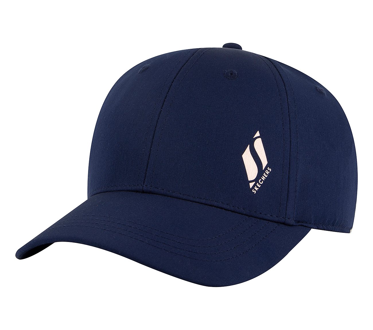 The Skechers Skech-Shine Rose Gold Diamond cap is made from a soft blend of polyester with stitching details, an adjustable buckle closure, and a rose gold diamond Skechers logo on the front panel.