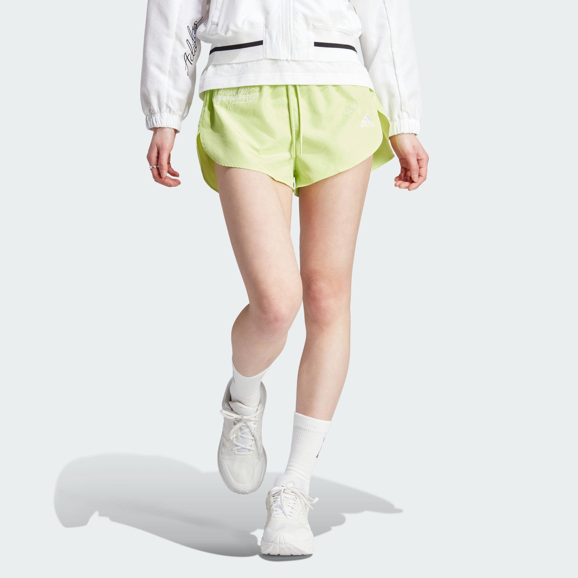 Make friends, make memories — and make a strong impression. These adidas shorts are the kind everyone will remember thanks to their sporty, doodle-style graphics. Cut for a loose fit with shaped hems for extra movement, the shorts are great for relaxing in the garden or enjoying some beach time. A minimum of 70% of this product is a blend of recycled and renewable materials.