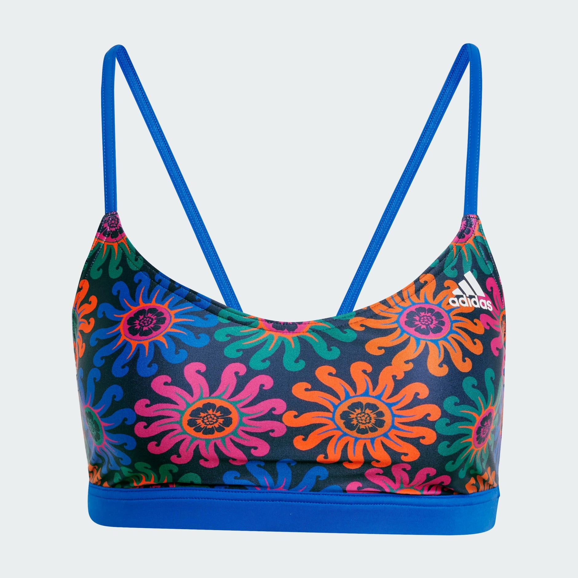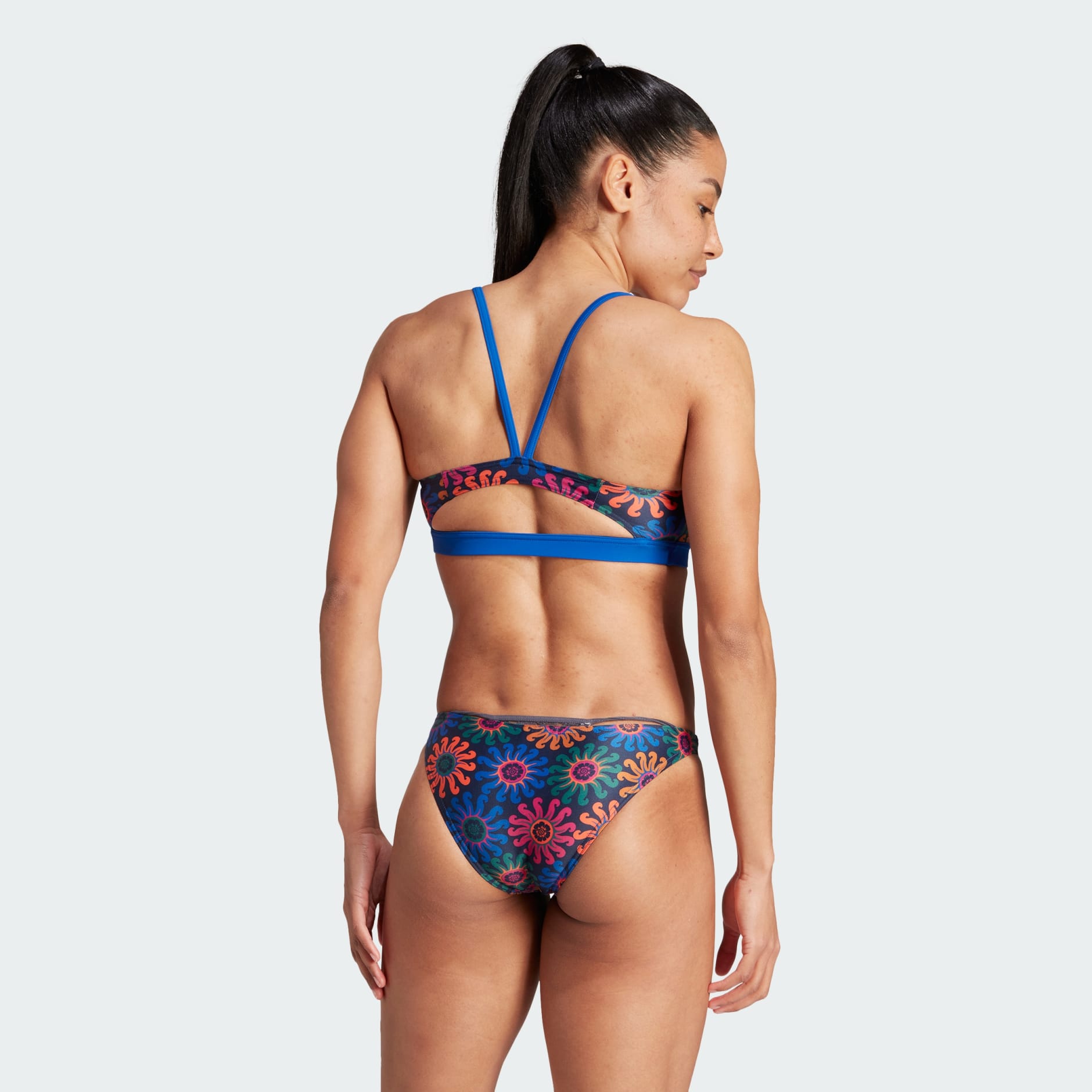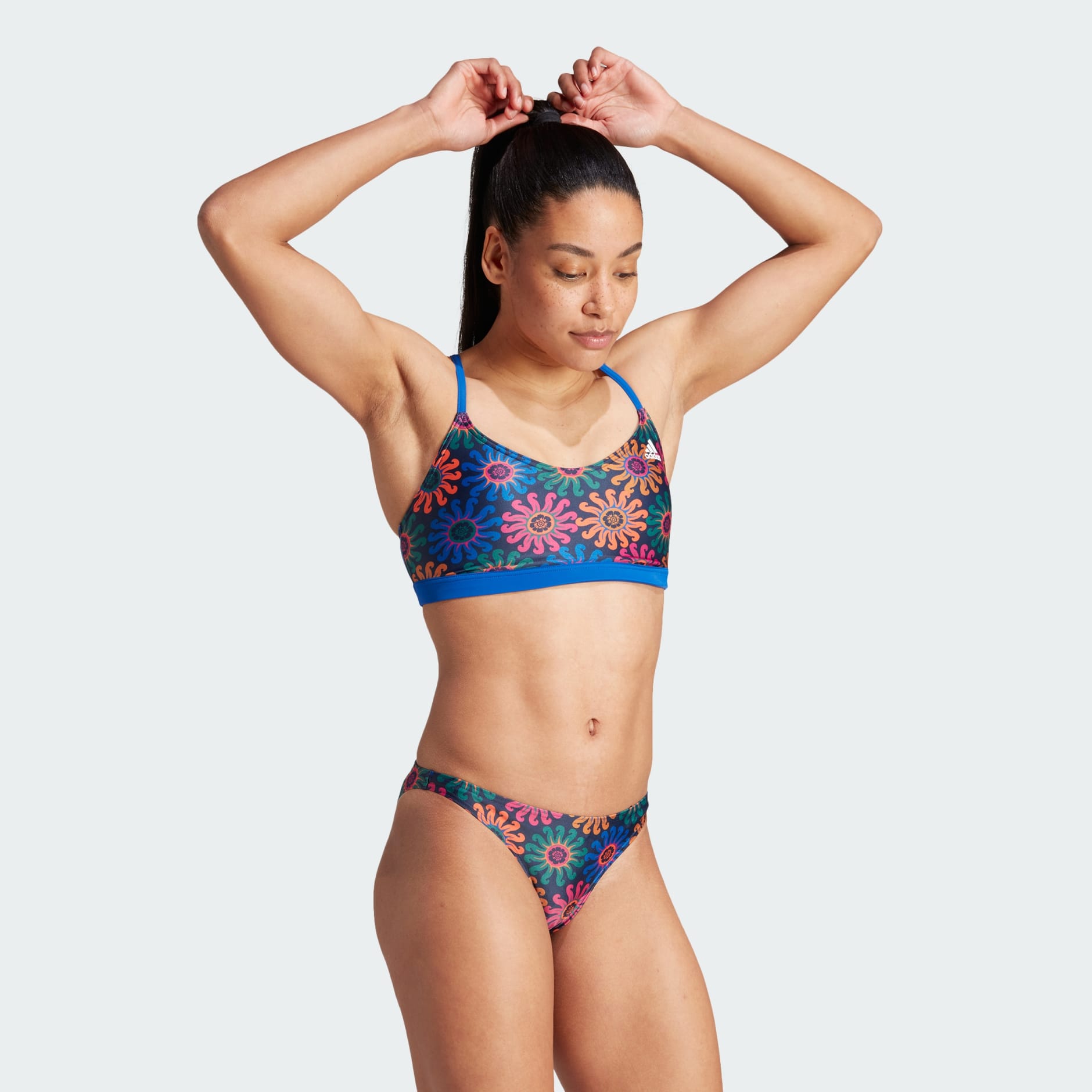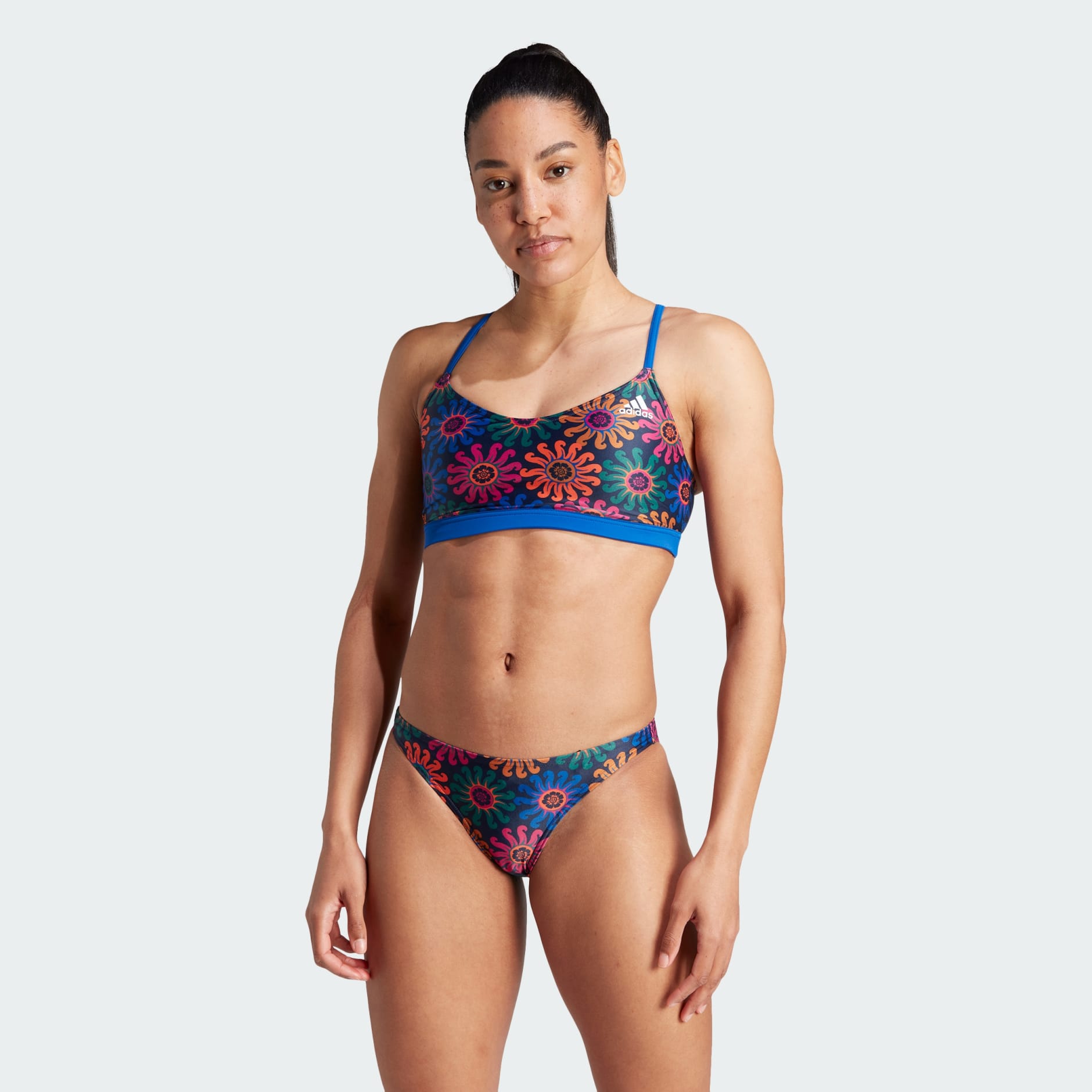 Being in a sunny mood comes naturally when you wear this adidas bikini. The top has a strappy design and removable pads. Rich, sun-drenched colours and a sun-inspired print celebrate warm days and bright sunshine. A minimum of 70% of this product is a blend of recycled and renewable materials.