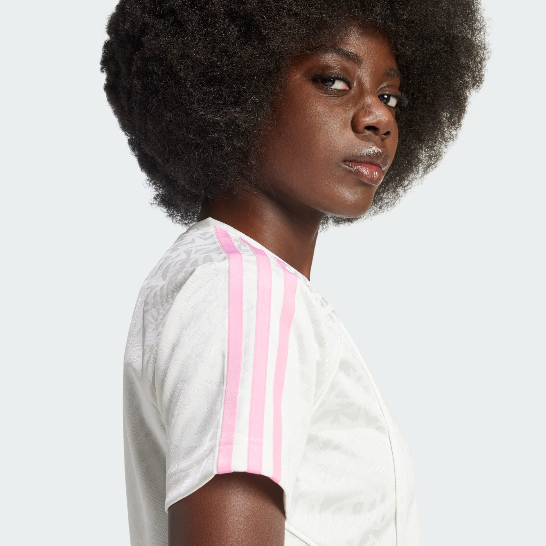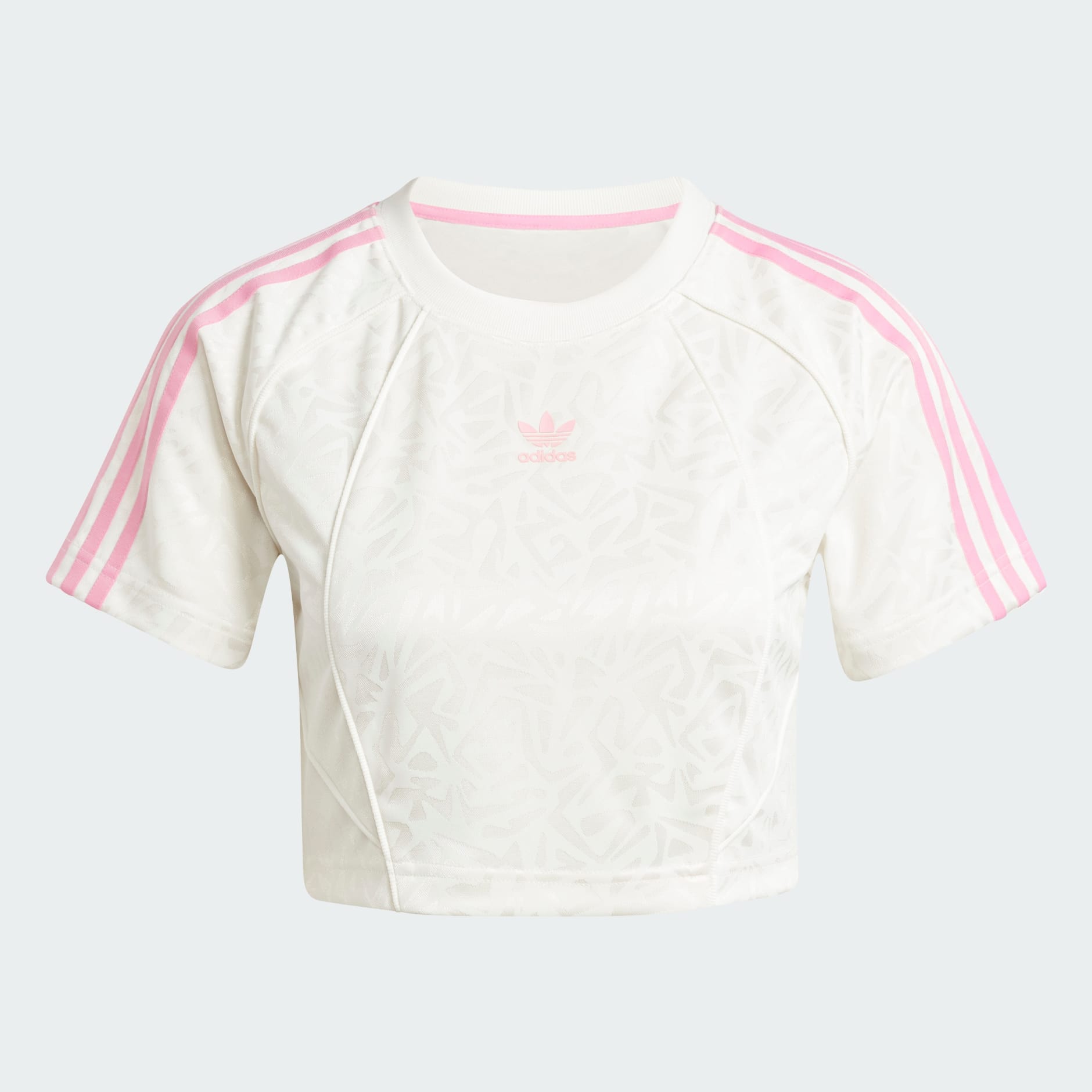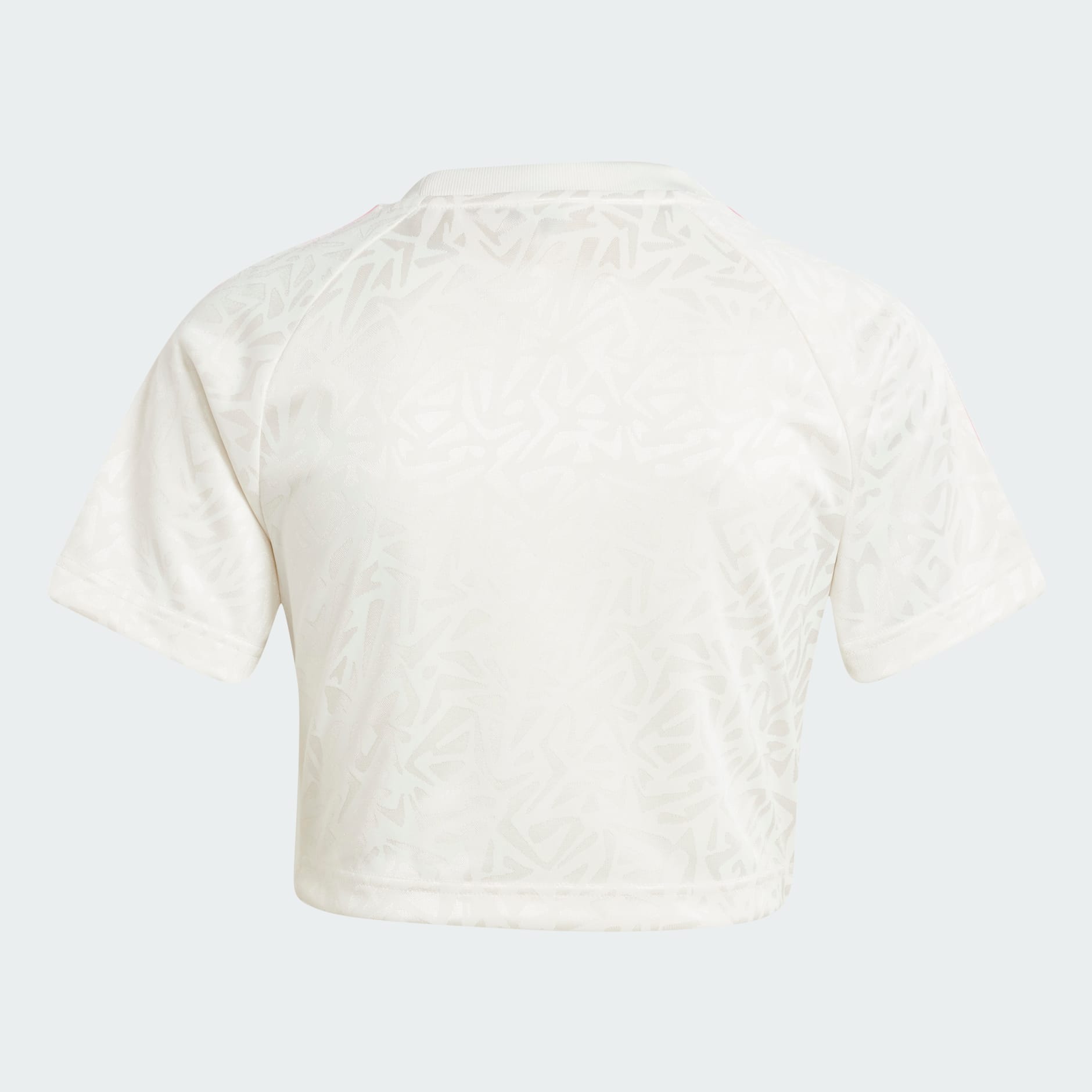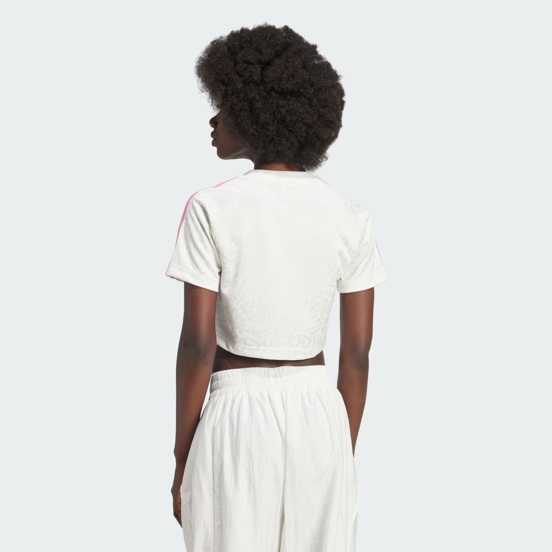 This baby tee is all about texture and style, with a jacquard leopard-print design that puts a fresh spin on animal print. The cut lines nod to classic football kits, and the slim fit hugs your body. 3-Stripes down the sleeves and a Trefoil front and centre show your love of sport. This product is made with 100% recycled materials. By reusing materials that have already been created, we help to reduce waste and our reliance on finite resources and reduce the footprint of the products we make.