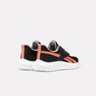 The comfortable and breathable Energen Lux sneakers feature a breathable knitted construction for optimal flexibility. The bright orange stripe and white sole stand out against the black upper.