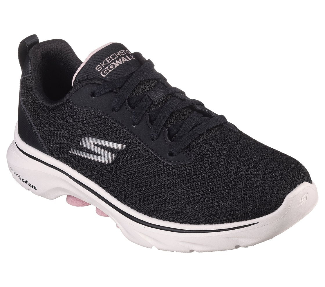 Walk in easy-wearing comfort with Skechers GO WALK 7™ - Clear Path. This vegan walking lace-up features an athletic mesh upper with a Skechers Air-Cooled Goga Mat™ insole, lightweight ULTRA GO® cushioning, and high-rebound Hyper Pillar Technology™ for added support.