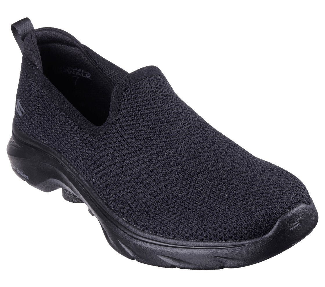 Walk in easy-wearing comfort with Skechers GO WALK 7™ - Ivy. This laceless vegan design features a stretch knit upper with a Skechers Air-Cooled Goga Mat™ insole, lightweight ULTRA GO® cushioning, and high-rebound Hyper Pillar Technology™ for added support.