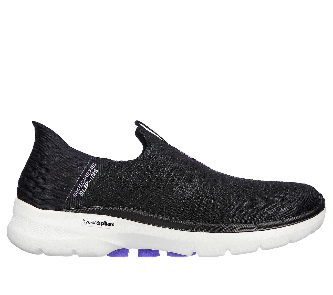 Go hands free with easy slip-on comfort wearing Skechers Slip-ins™: GO WALK® 6. Featuring an engineered knit upper with a Skechers Slip-ins™ molded heel panel, lightweight ULTRA GO® cushioning, a Skechers Air-Cooled Memory Foam® insole and high-rebound Hyper Pillar Technology™ for added support.