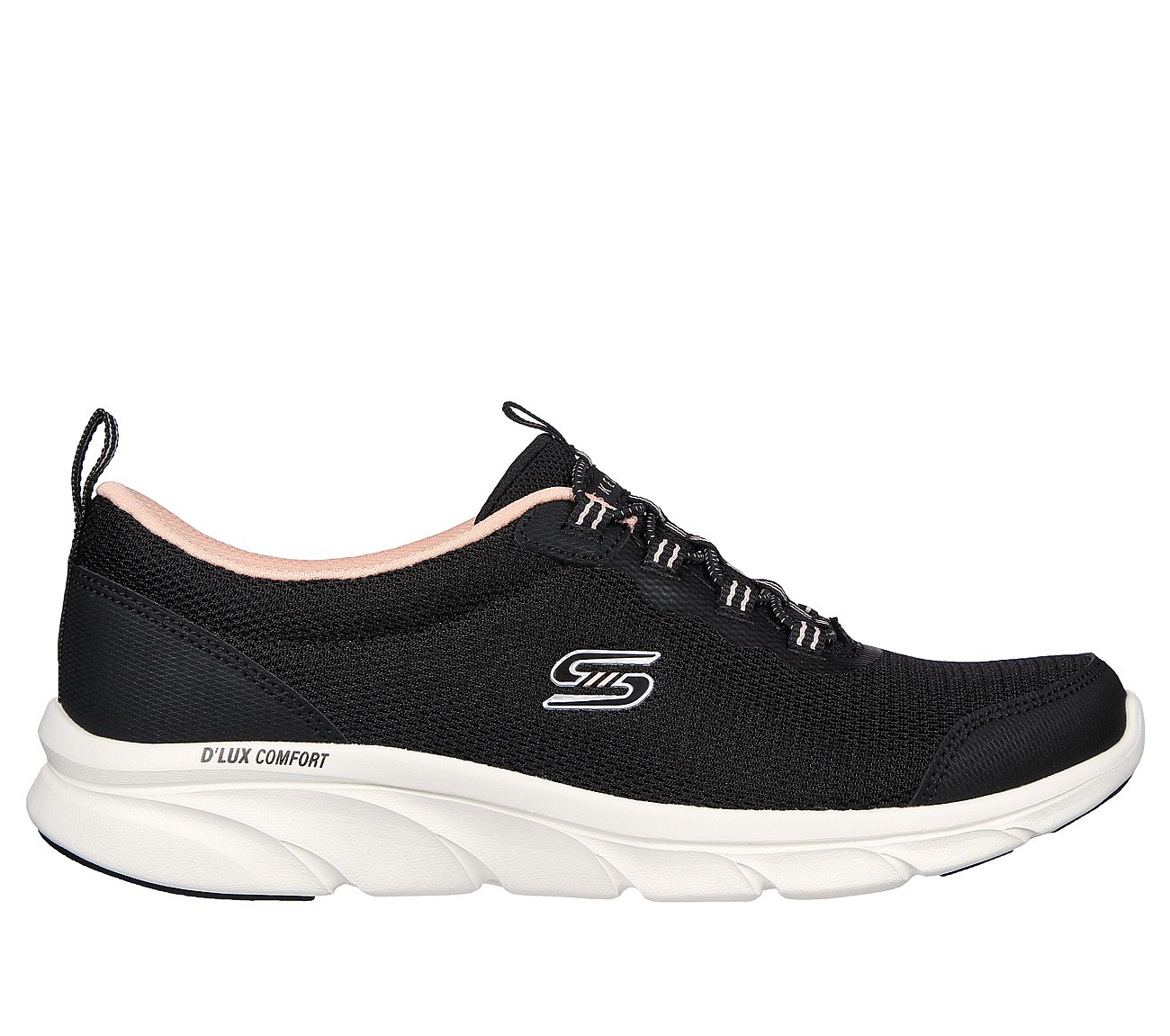 engineered mesh kit upper with stretch laces, Skechers Air-Cooled Memory Foam® insole and a well-cushioned D'Lux Comfort midsole.