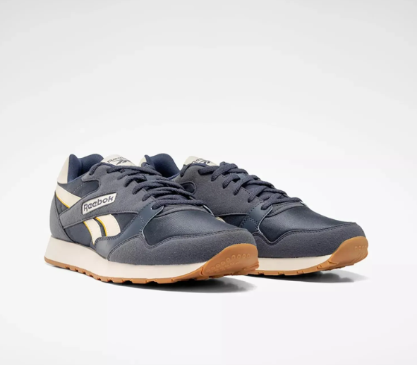 Faux suede panels and nylon patches on these sneakers feature the classic Reebok shape. They're branded with logos on the front and back and fitted with a vintage-style rubber outsole. An EVA foam midsole provides cushioning and support.