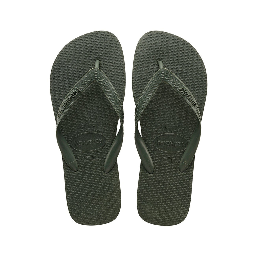 Brazil's original and authentic flip-flops available in fourteen colours. When the first Havaianas model came out, consumers began to flip the sole upside down so that the colourful part could be seen which made them look a single colour. The Top model came out in 1994: it was the first extension to the brand in 32 years. Monochrome Havaianas are an understated classic for any summer footwear collection.