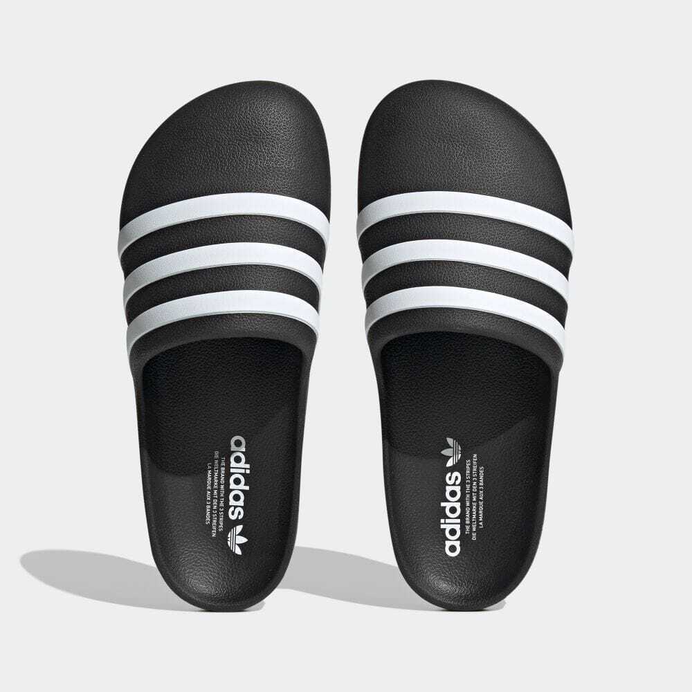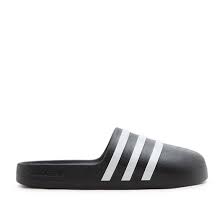 The adidas Adifoam Adilette is a super comfortable version of the classic slippers - but it's closed at the front instead of open. Black upper with white logo stripes.