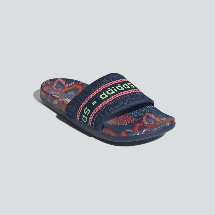 Always be comfortable. These adidas slides keep your feet happy from the pool deck to the locker room to the couch and everywhere in-between. They slip on and off easily and deliver a relaxed fit whether you're wearing socks or going barefoot. A unique footbed design brings big beach vibes to any occasion.