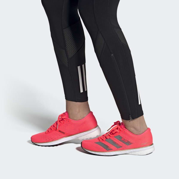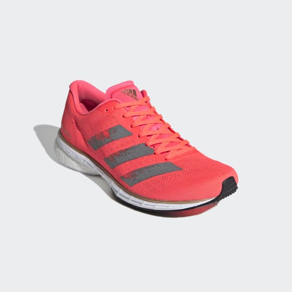 Who says your run needs to belong and leisurely? It's time to rewrite the narrative in these super-light running shoes made for a faster tempo. These Adizero Adios 5 shoes are built for comfort throughout the run, with a springy midsole and featherlight upper so you can keep a consistent pace even when you start to get tired. Pink accents represent unity and a global call for change.