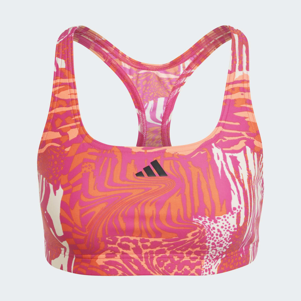 Take a long ocean swim or relax in the sun on your beach towel. Why not both? This adidas bikini is sporty as well as stylish. The athletic cut says triathlon training, while the bold animal print says it's time for a selfie.
