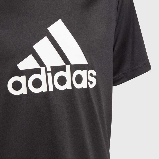 You can never have too many comfortable t-shirts. This juniors' tee is made of soft cotton and cut to help you move. It has a ribbed crewneck for a classic look. A bold contrast adidas Badge of Sport stands out on the chest.