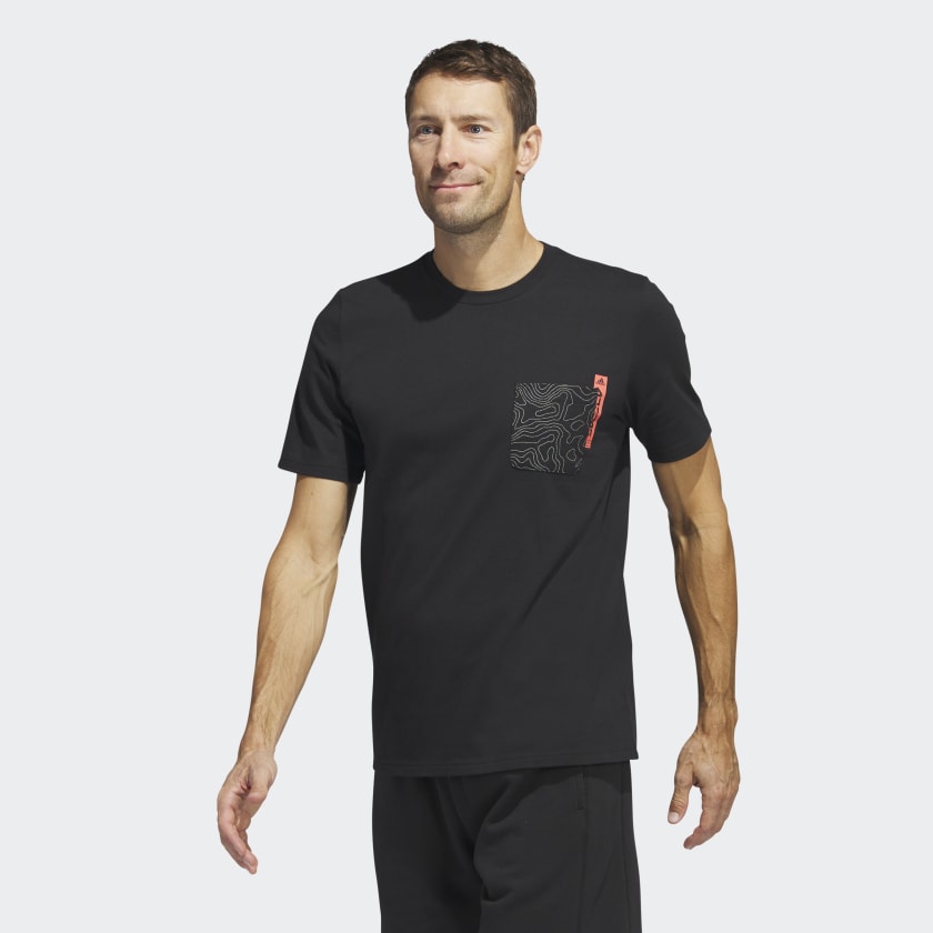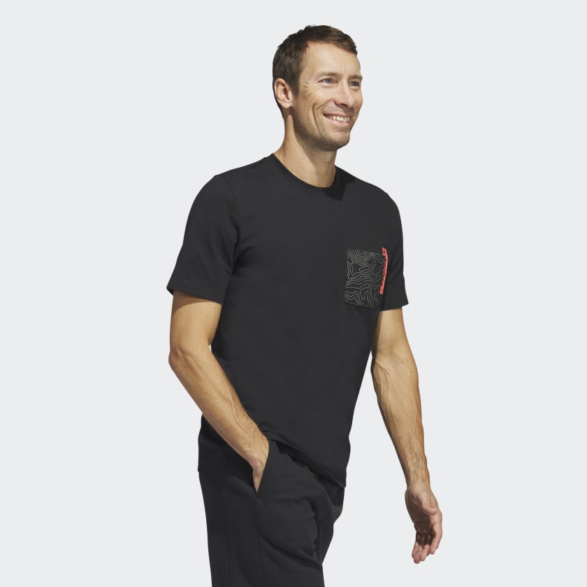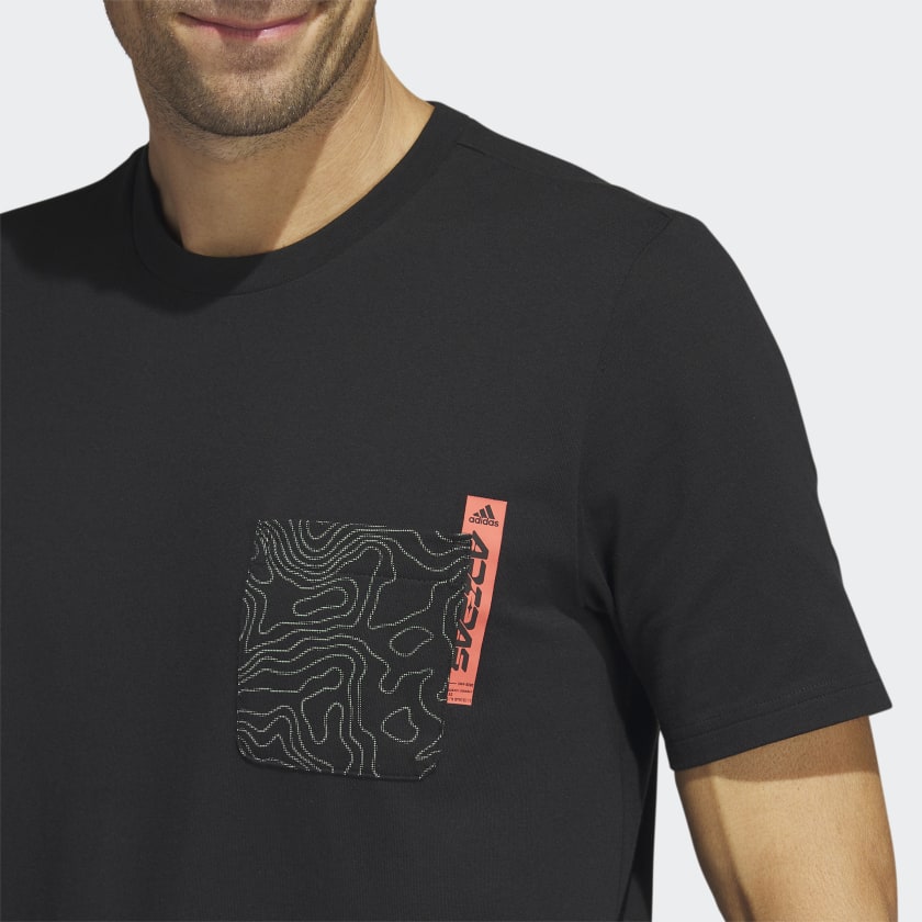 Tap into your adventurer's spirit with this adidas graphic pocket tee. With patterns inspired by the outdoors and the DNA within you to seek new experiences, this soft cotton tee keeps you comfortable through whatever the new day may bring.