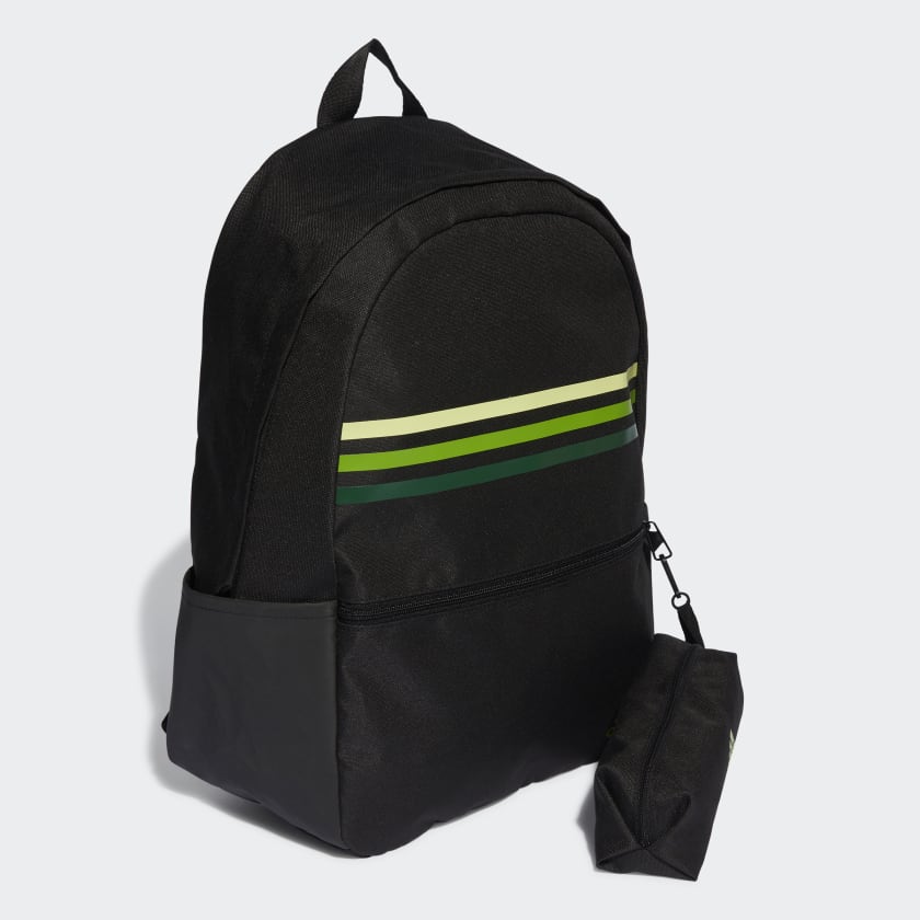 Classic 3-Stripes in gradient colours give this adidas backpack standout style. Stay organised with all the pockets you need, including one on the front and one on each side. The coated bottom ensures it stands up to daily use, and adjustable shoulder straps make comfort a priority. The coordinating pencil case zips for easy access to writing utensils or other small essentials.