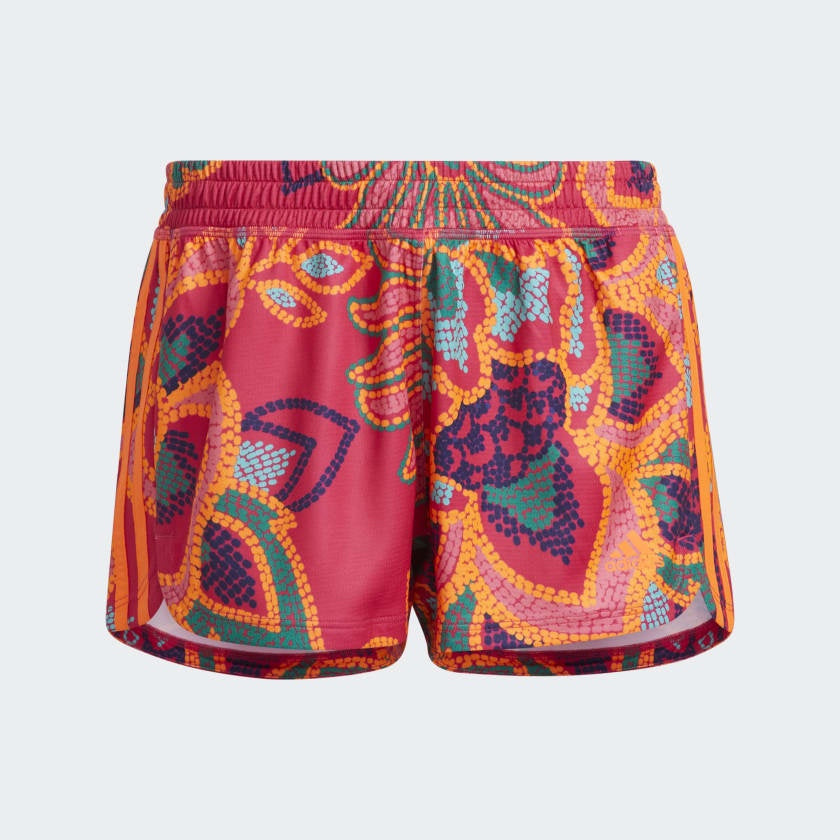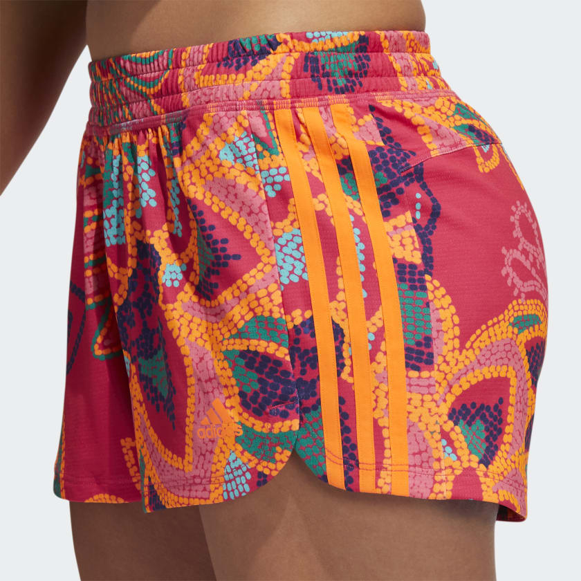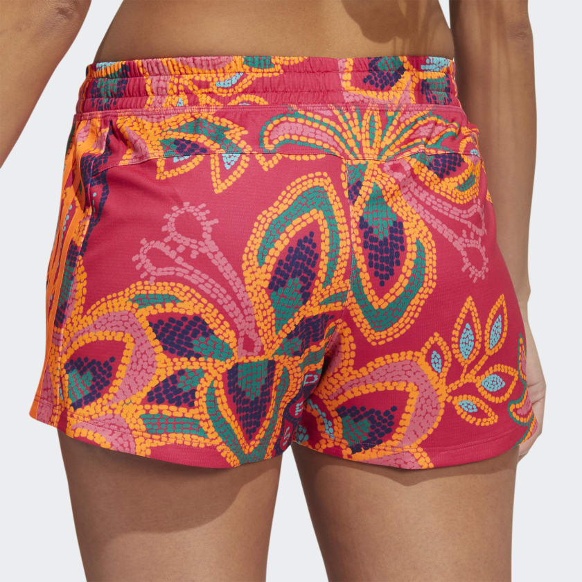 Look and feel good while you work out when you wear these adidas shorts. You'll feel dry no matter how hard you push your limits, thanks to moisture-absorbing AEROREADY. Featuring a print from Brazilian label FARM Rio, they bring beloved tropical elements to life. The pineapple is known as the fruit of hospitality, the toucan represents nature, and the flowers are symbols of femininity. Neon 3-Stripes seal the deal.