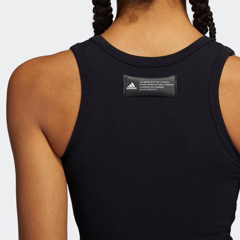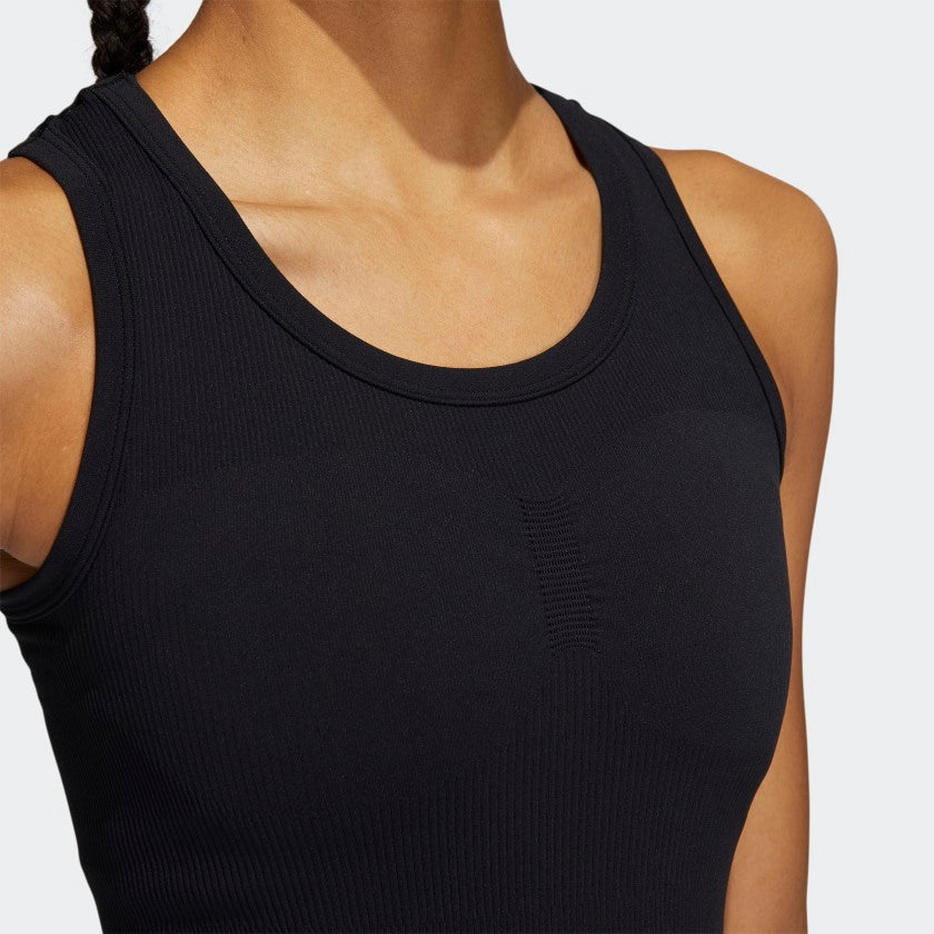 With Formotion, we flipped the concept of shapewear inside out. Wear this adidas training tank top to dance, barre or yoga. With zoned levels of compression, it accentuates your body's shape without restricting your range of motion. The seamless knit feels buttery soft, keeping you comfortable from warm-up stretches to your post-workout smoothie. This product is made with Primegreen, a series of high-performance recycled materials.
