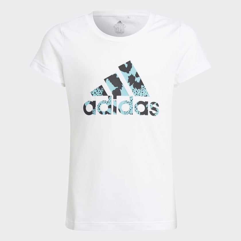 Finesse your playlist, grab this t-shirt and go. Rack up the reps in this juniors' adidas training tee. Feel the silky soft jersey and know that you'll stay dry and comfortable thanks to AEROREADY. An animal-inspired print makes this your go-to gear. Roar. This product is made with Primegreen, a series of high-performance recycled materials.