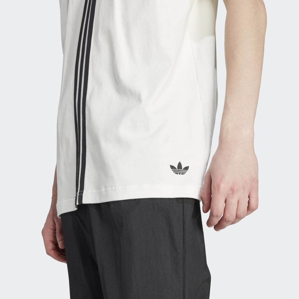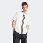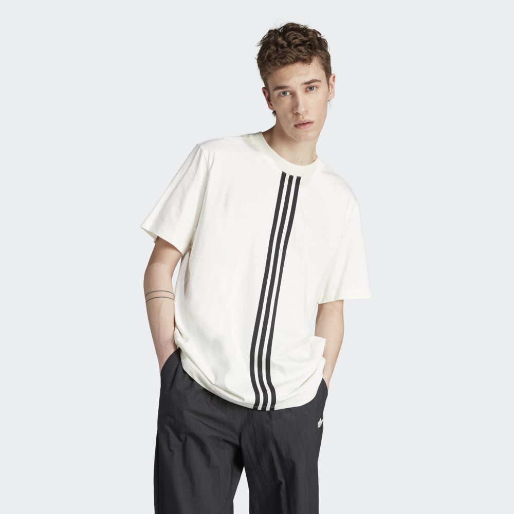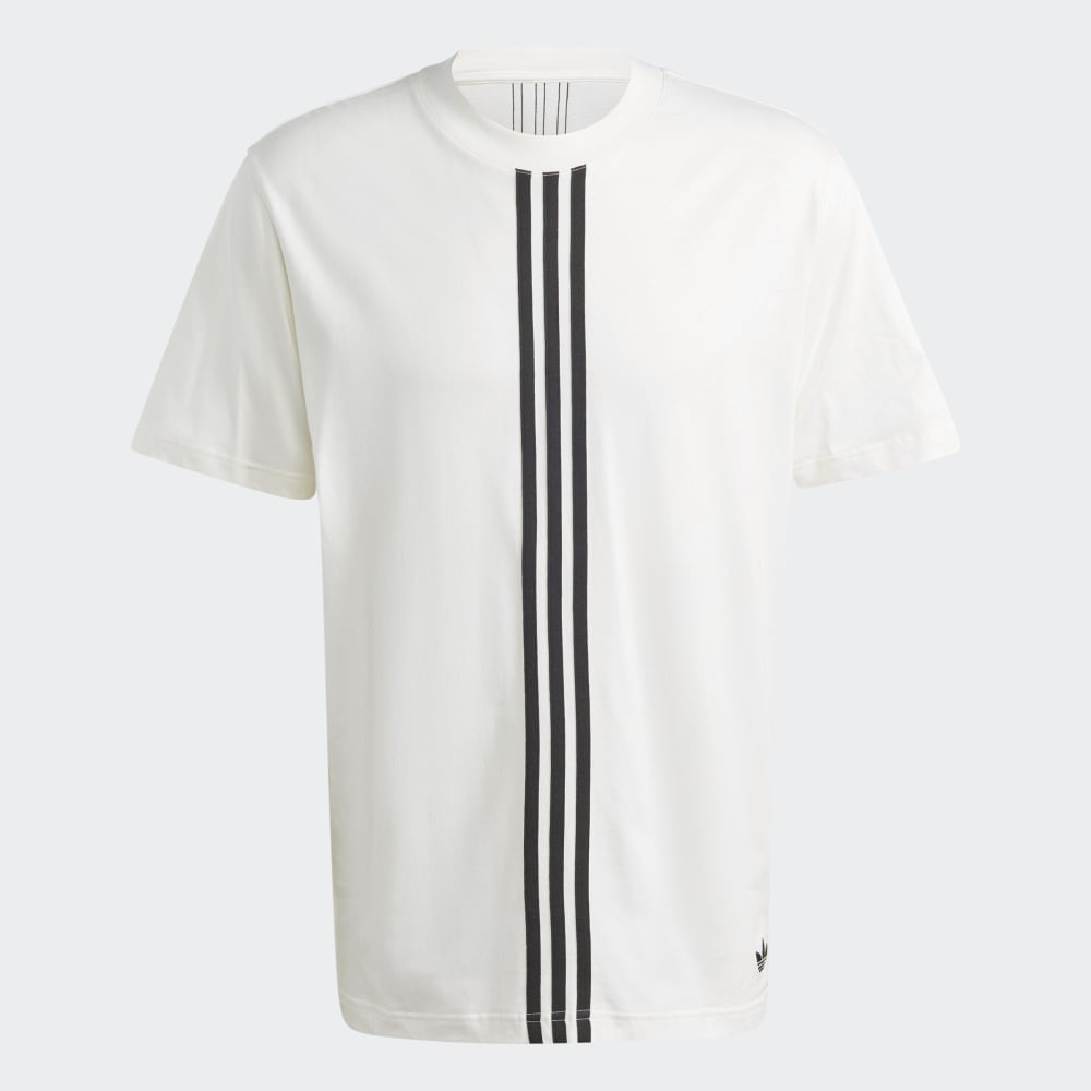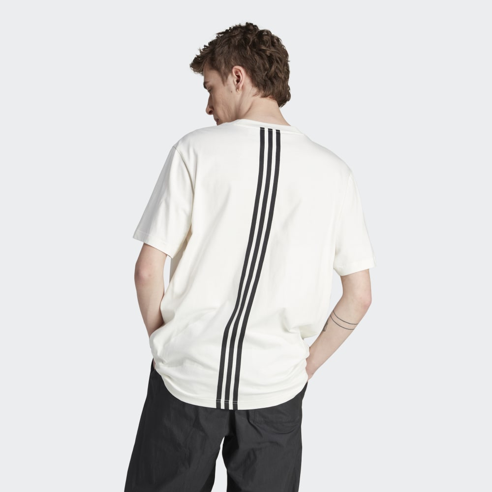 Double the DNA. This adidas t-shirt shows the 3-Stripes on the front and back, a change from their usual spot on each sleeve. Soft cotton single jersey has a slight stretch to keep you comfortable, and a ribbed crewneck stays fitted up top as you move through the day.