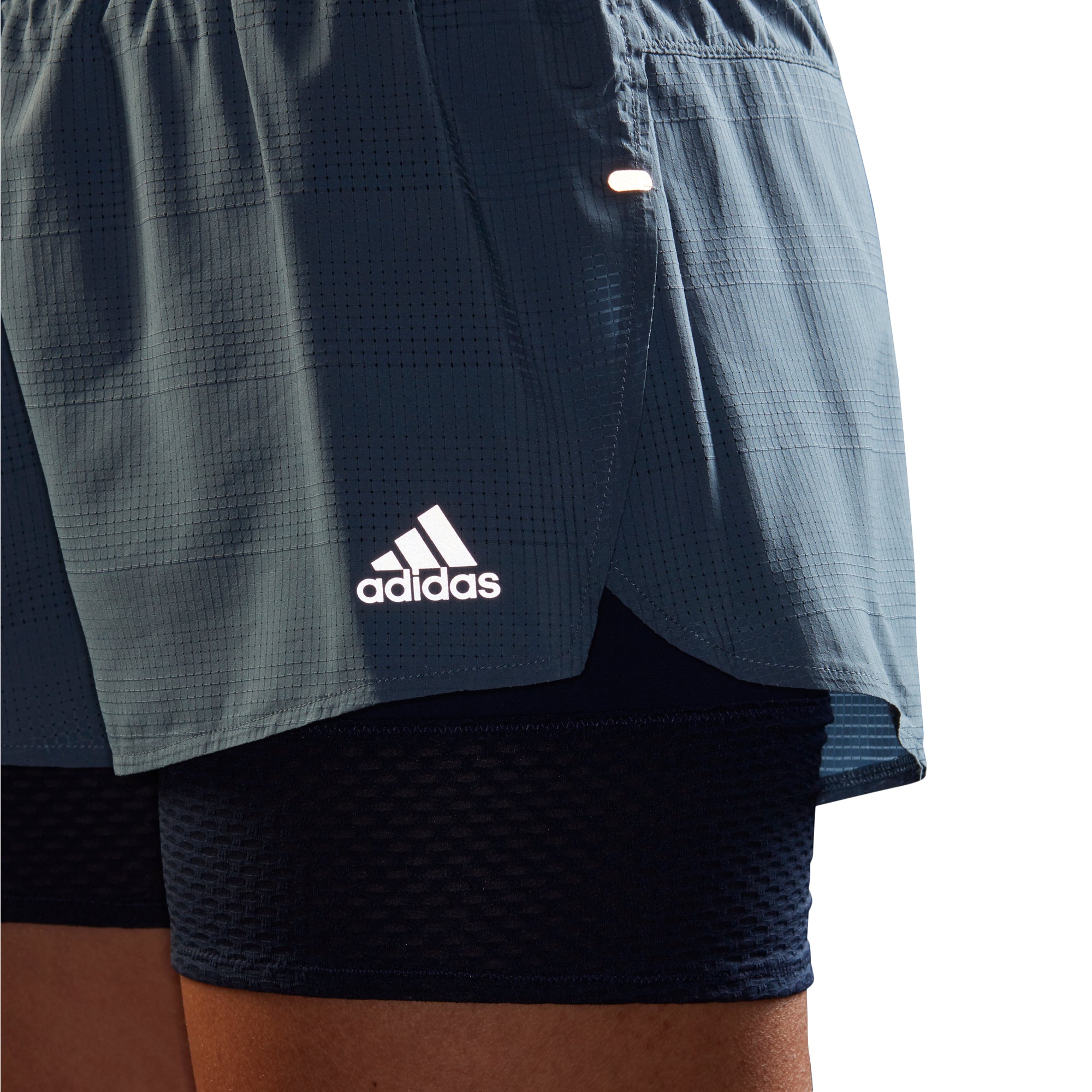 Weather doesn't stop you. Not Sahara-like winds or unrelenting sun. Feel good in the lightweight, breathable fabric of these Adidas running shorts. Inner tights provide coverage while you stay cool. Never write "too hot" in your training log.