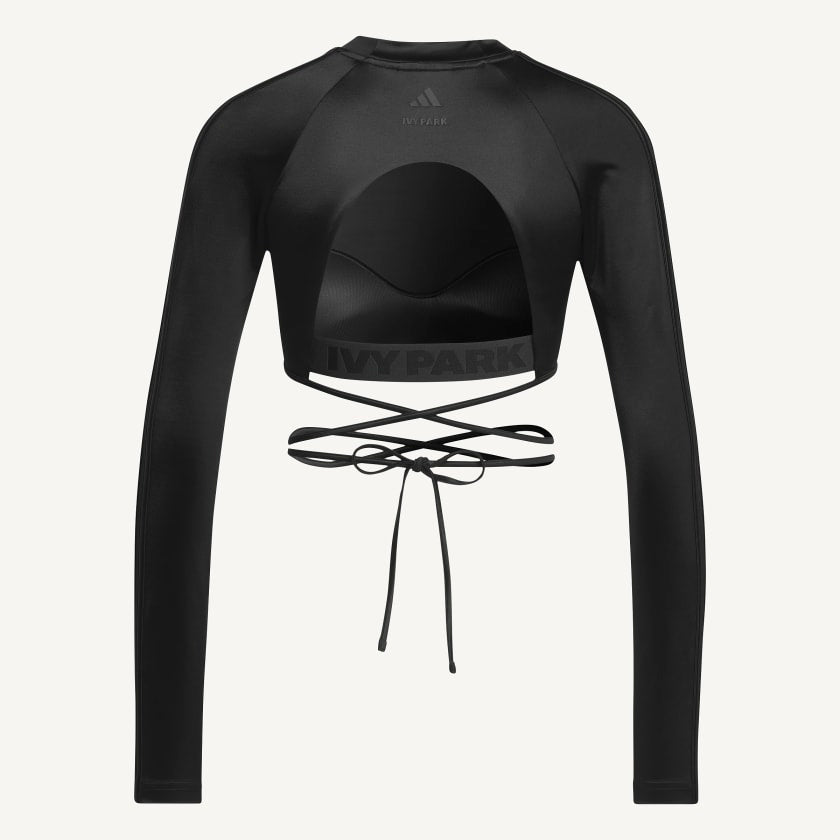 This adidas x IVY PARK crop top is edgy and cinematic. The jacquard-woven ties around the waist and an open-back design balance out the sporty, signature 3-Stripes sleeves. Every design element comes together to create a free-moving silhouette for your next night out.