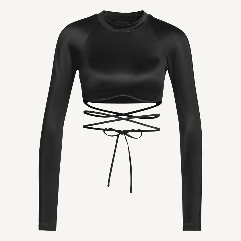 ADIDAS IVP SHINY LONG SLEEVE CROP TOP - BLACK