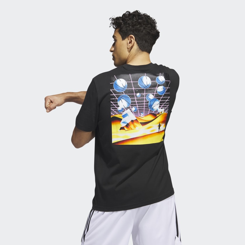 Minimal up front, futuristic on the back. This adidas basketball t-shirt takes your game to the metaverse and beyond with a vibrant digital oasis graphic. The loose fit lets you move freely no matter where the day takes you next.