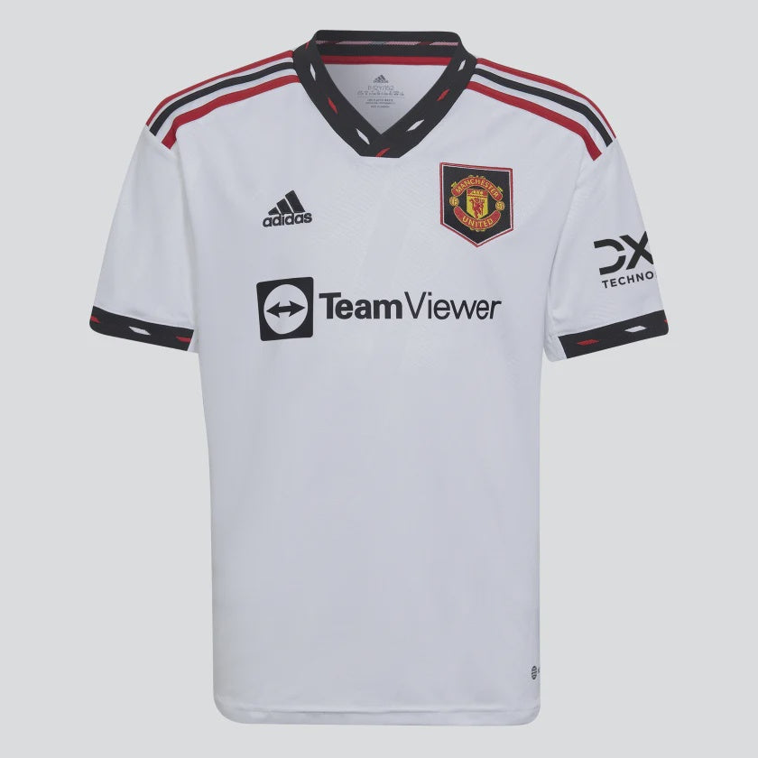 Youth. Courage. Success. The thee pillars of Manchester United's motto have brought the club more than a century of triumphs. With its clean red design and white ribbed crewneck, this juniors' adidas football jersey takes inspiration from the iconic kit that carried them to some of their most memorable moments. Made for fans, its soft fabric and moisture-absorbing AEROREADY keep you comfortable. A devil signoff on the back shows your pride. This product is made with Primegreen, a series of high-performance recycled materials.