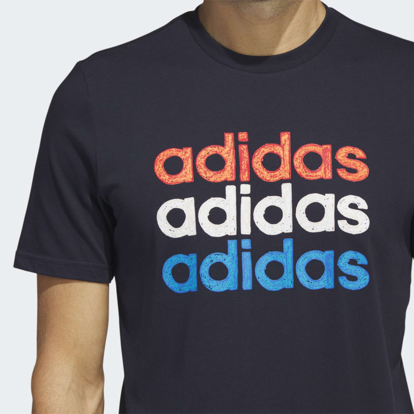From the brand that's never afraid to scribble outside the lines. Cut from cotton jersey fabric, this adidas t-shirt will get even softer — yet no less striking — over time. Wear it with shorts and slides for the ultimate casual look.