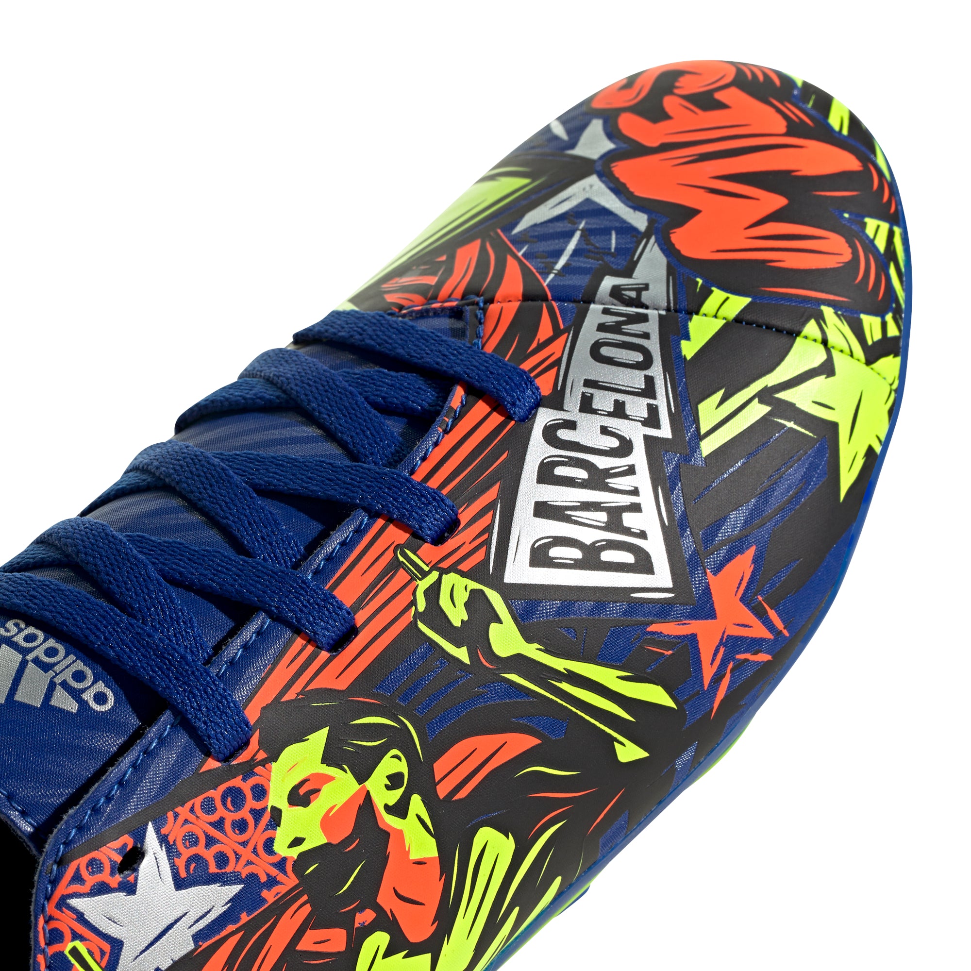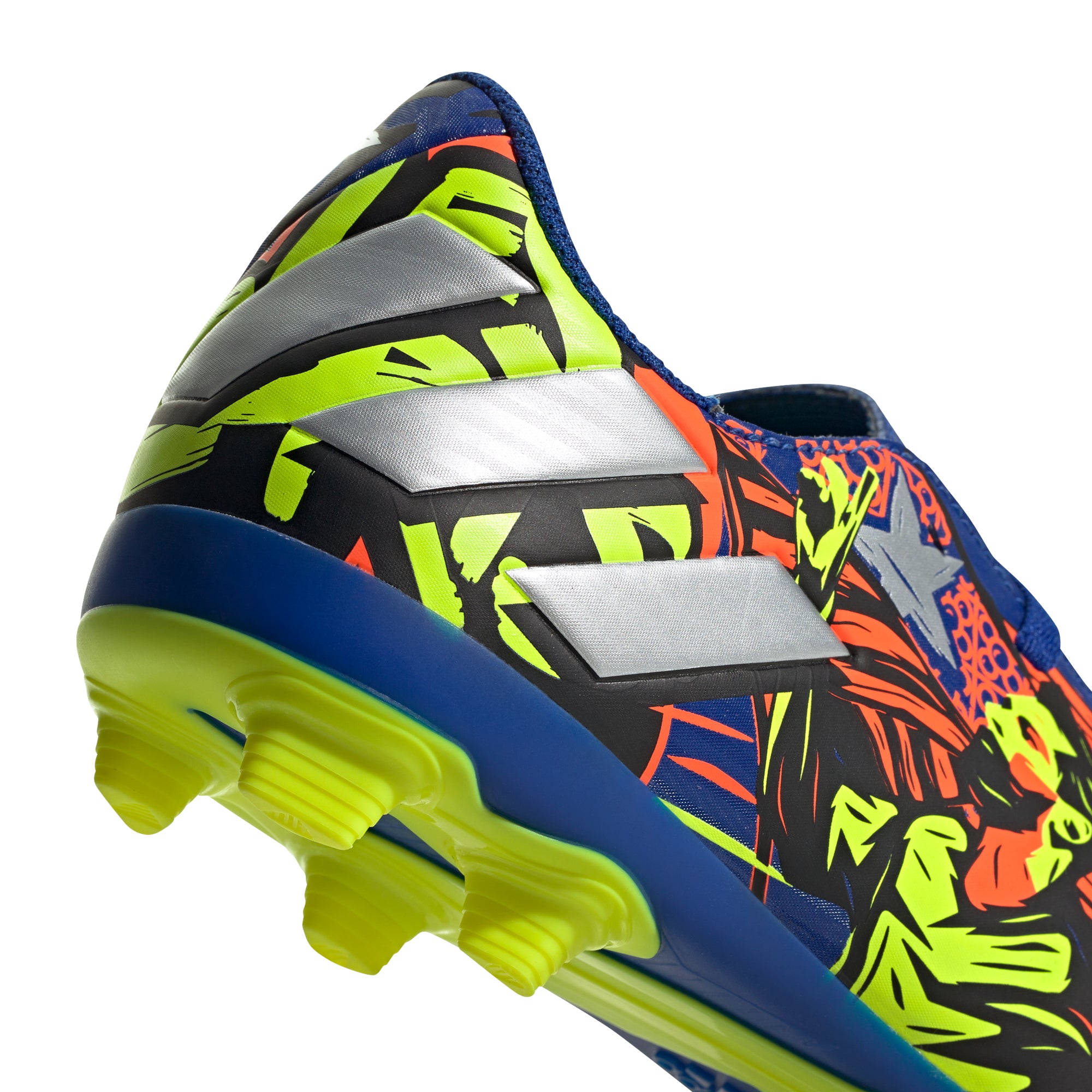 Dodge expectations. Zig when they think you'll zag. Pass when they expect you to move. Unlock agility and power your unpredictability in the adidas Nemeziz. These juniors' soccer cleats have a soft synthetic upper that shows off Lionel Messi's distinctive logo. The flexible tongue locks you down for next-level skills on multiple surfaces.