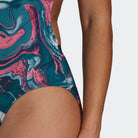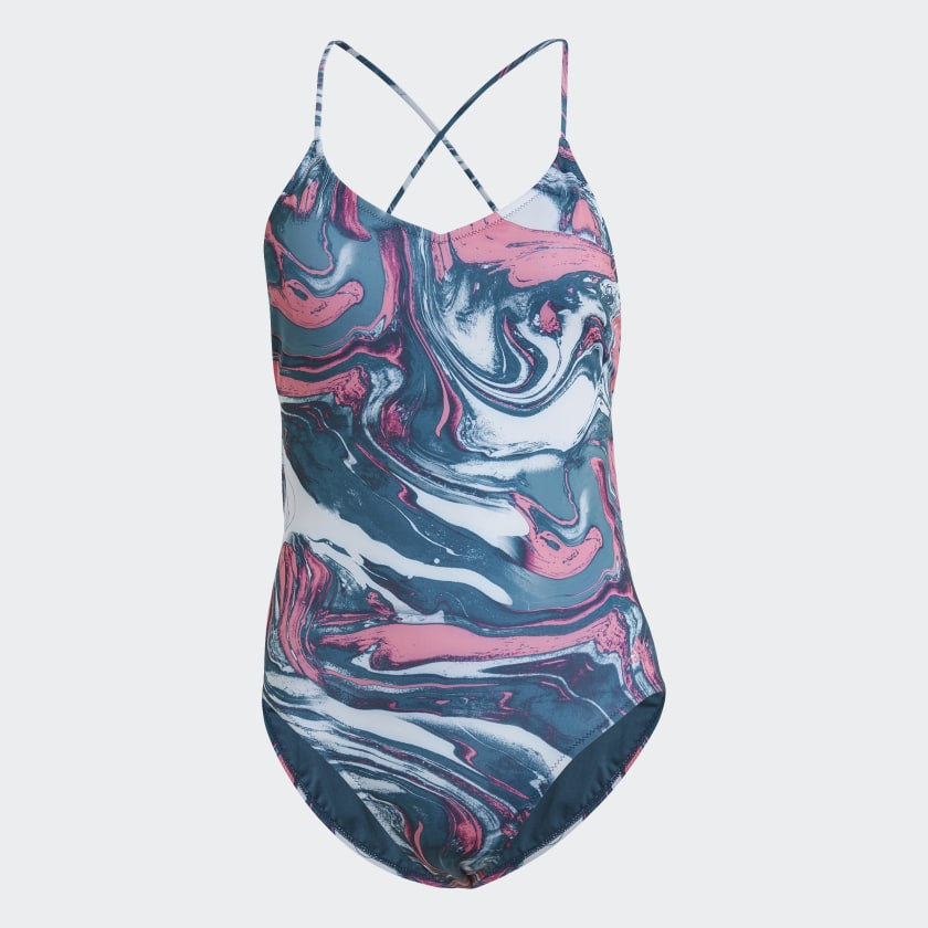 The ocean is always moving and always changing. This adidas swimsuit has an allover print that's inspired by the sea's wild beauty. Soft, stretchy fabric and thin adjustable straps give you a comfortable fit. The inner bra has removable pads so you can adjust your level of lift and support. This product is made with Primegreen, a series of high-performance recycled materials.