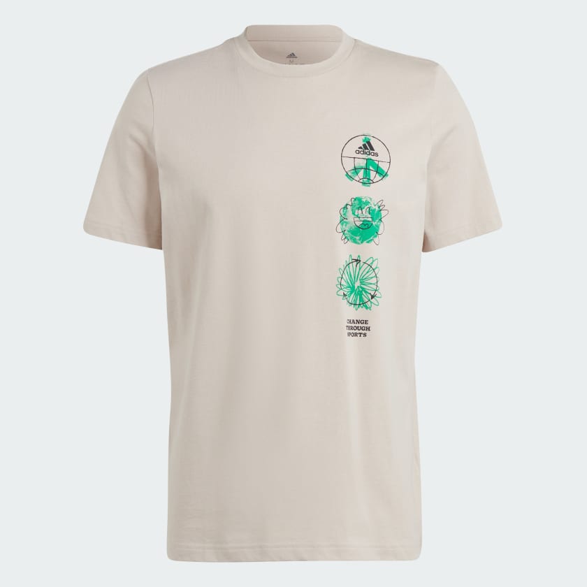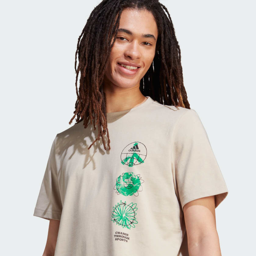 A rallying cry for the planet, this adidas t-shirt shows our commitment to using sport as a force for good. Join the collective effort every time you step out in the soft cotton design that has a whimsical water-inspired graphic on the front. Relaxing after the gym or making the most of a rest day, youll look and feel good.We partner with Better Cotton to improve cotton farming globally. Better Cotton makes global cotton production better for the people who produce it, better for the environment it grows in, and better for the sectors future. Better Cotton is sourced via a chain-of-custody model called mass balance. This means that Better Cotton is not physically traceable to end products. However, Better Cotton Farmers benefit from the demand for Better Cotton in equivalent volumes to those we "source." Find out more here: bettercotton.org/learnmore
