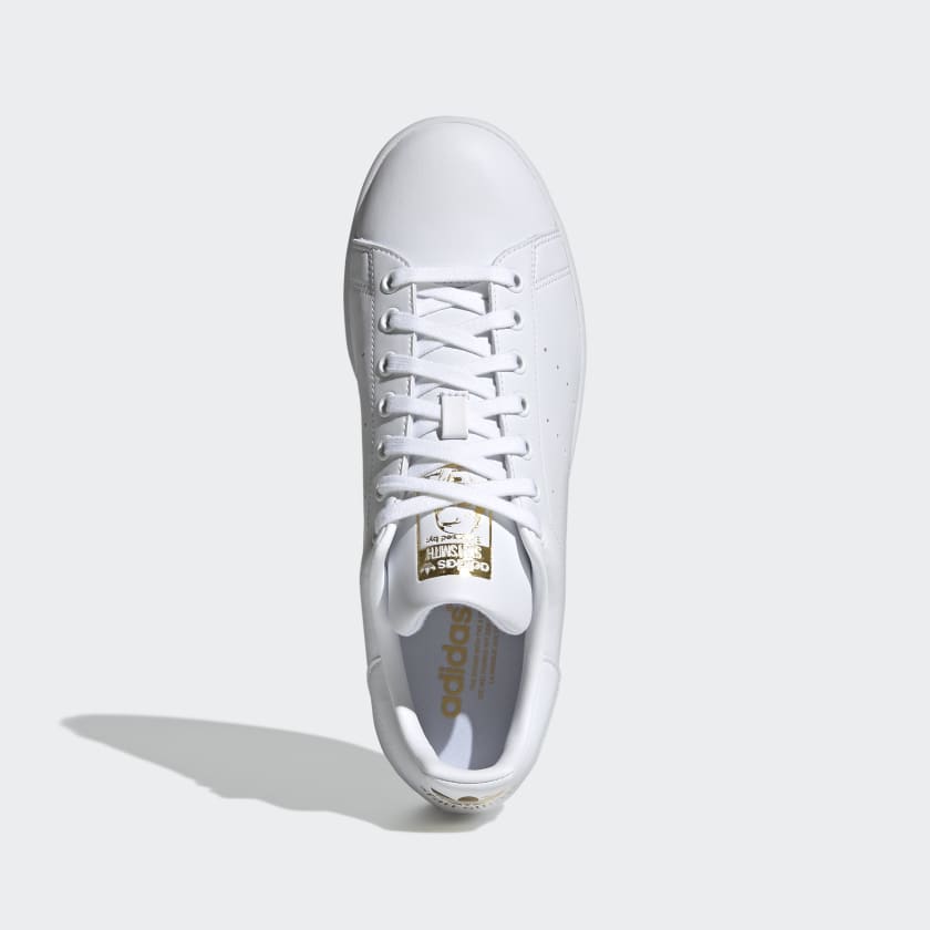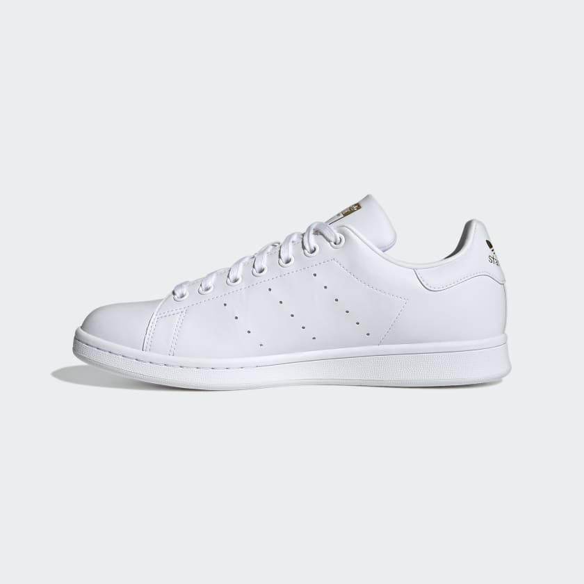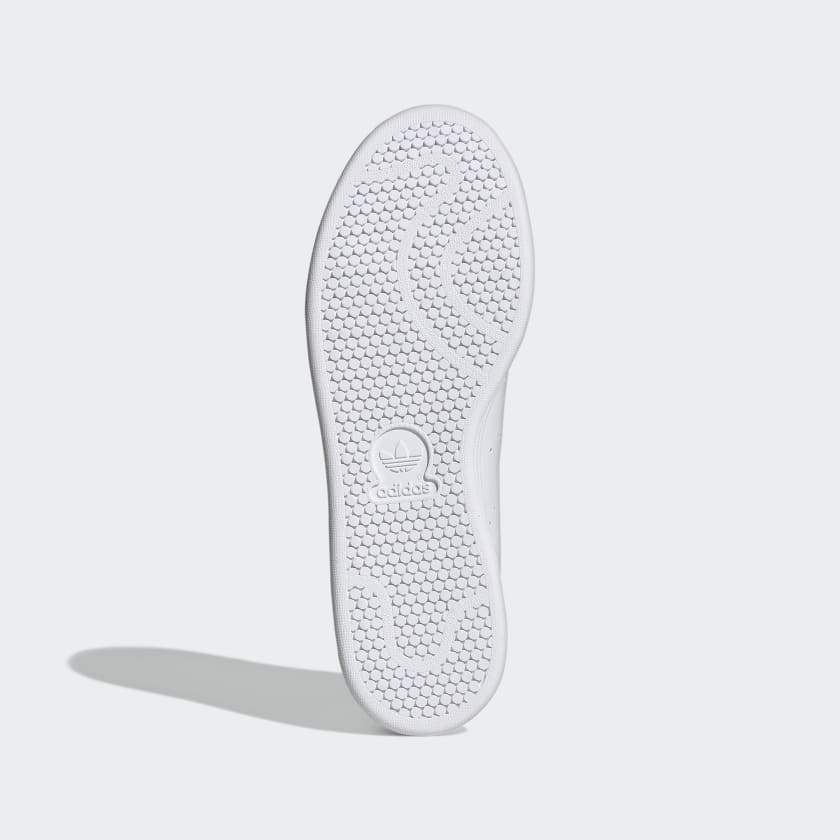 Timeless appeal. Effortless style. Everyday versatility. For over 50 years and counting, adidas Stan Smith Shoes have continued to hold their place as an icon. This pair shows off a fresh redesign as part of adidas' commitment to use only recycled polyester by 2024. With a vegan upper and an outsole made from rubber waste, they still have iconic style, they're just made with the planet in mind