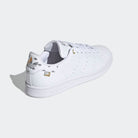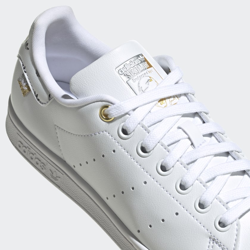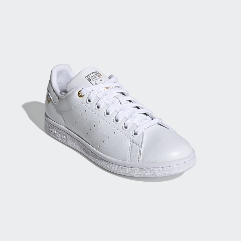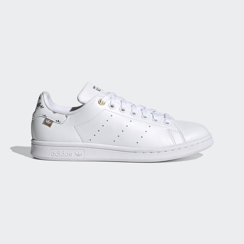 The iconic Stan Smith sneaker has been keeping feet fresh since the 70s. Now, the world is changing. So it's time for us to change, too. These shoes are made with recycled materials as part of adidas' commitment to help end plastic waste. But you'd never know about the change by looking at them. They've got the same smooth look, crisp lines and low-profile style as the original. This product is made with Primegreen, a series of high-performance recycled materials. 50% of upper is recycled content. No virgin polyester.