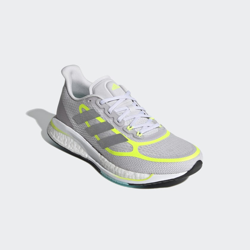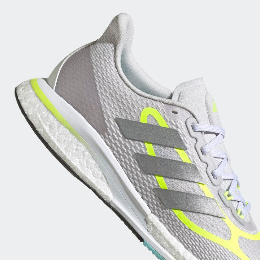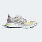 Take off. Touch down. Repeat. These adidas running shoes ensure soft landings and propulsive energy to help you go the distance. A combination of Boost and Bounce in the midsole provides the ideal mix of energy return and spring. The seamless build wraps around your foot, keeping it secure, ventilated and comfortable. This product is made with Primegreen, a series of high-performance recycled materials.