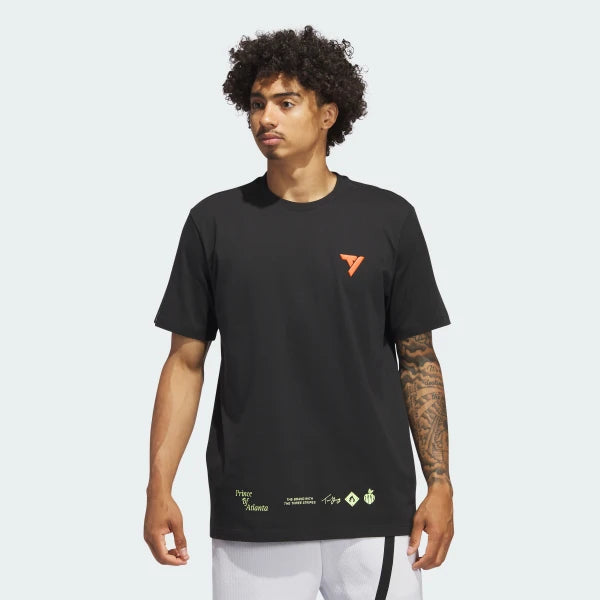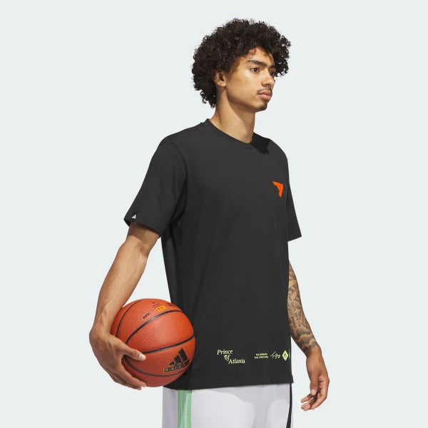 ADIDAS TRAE PRINCE OF ATLANTA SIGNATURE BASKETBALL GRAPHIC T-SHIRT - BLACK